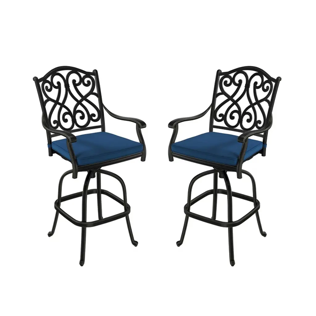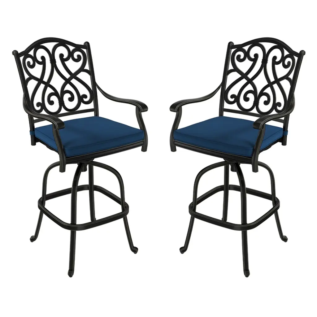 Cast Aluminum Counter Stool With Cushion, Set Of 2 - Dark Lava Bronze/navy