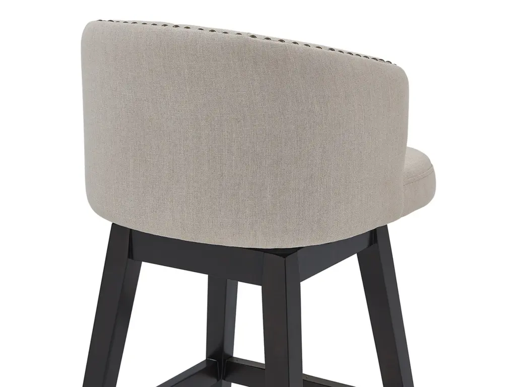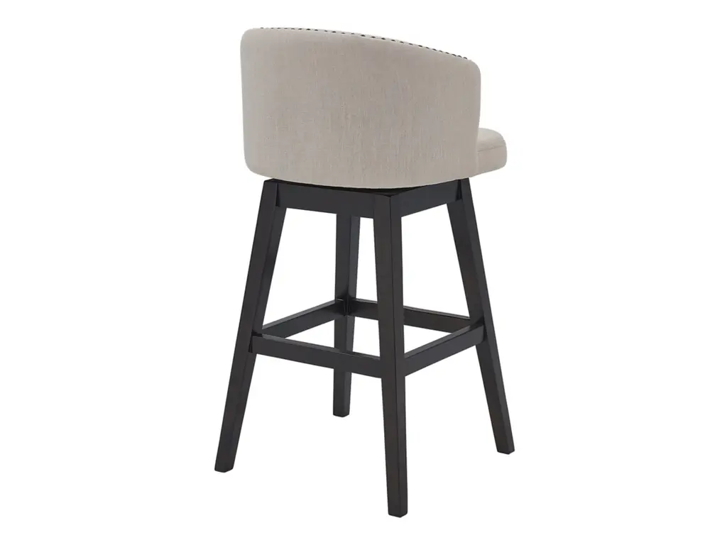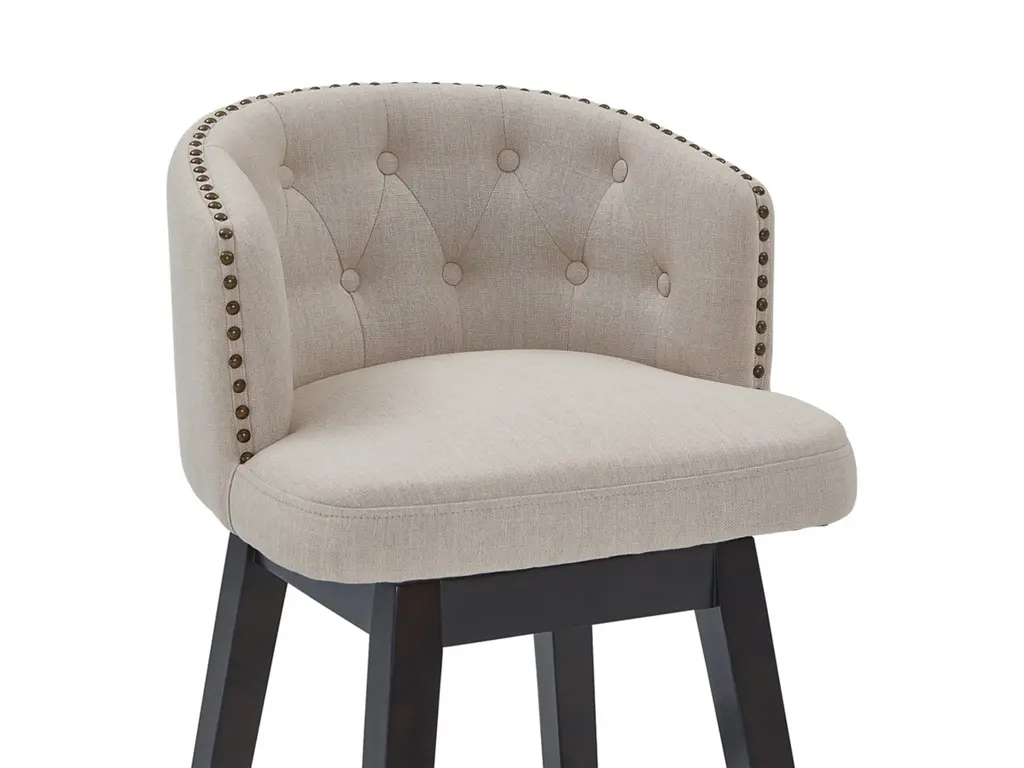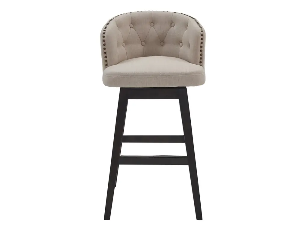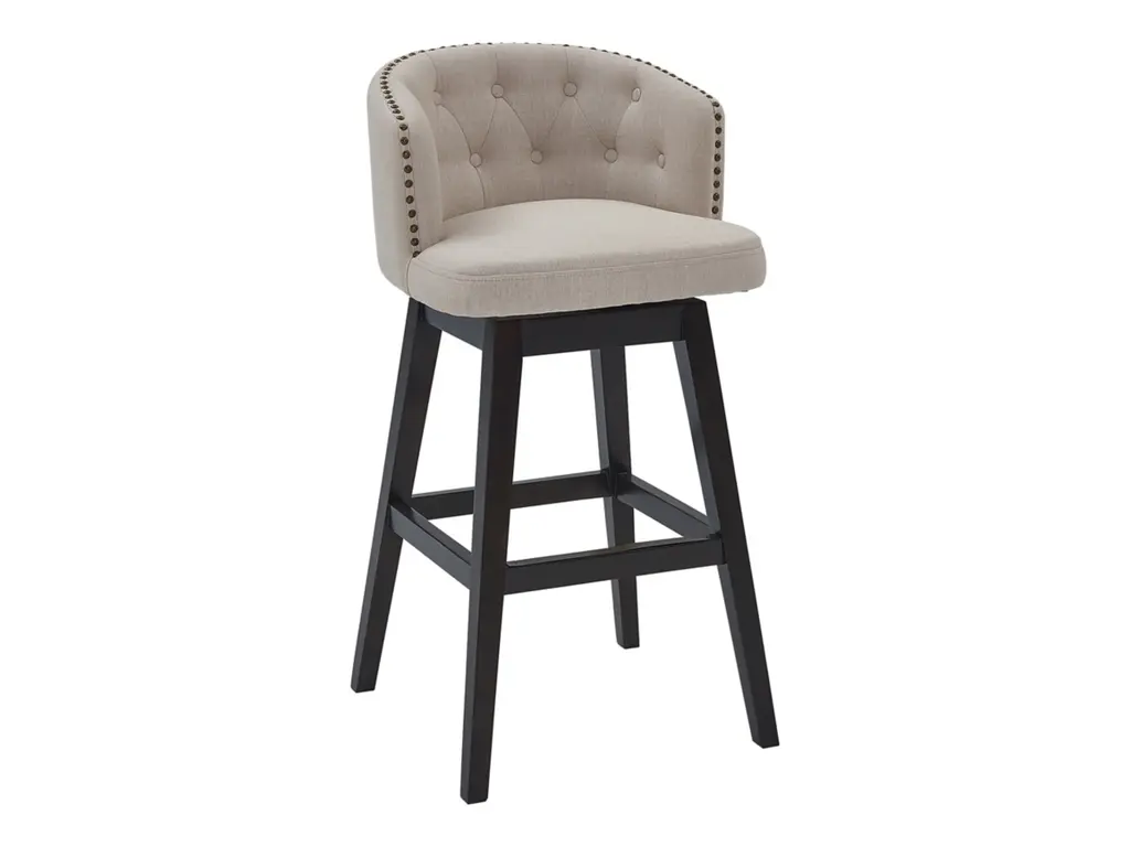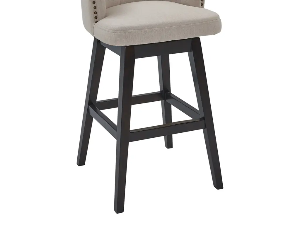 The Armen Living Celine wood barstool is an excellent choice for the transitional or contemporary household. Constructed from a combination of eucalyptus and birch wood frame that is certain to maintain its durability for many years to come. The Celine’s legs feature an Espresso wood finish and the plump, foam padded seat and back of the barstool are upholstered in tan fabric. The back of the Celine is rounded and features tufted accents that add a unique aesthetic accent to the piece. The barstool’s 360 degree swivel function allows for a wide range of movement while seated and the included footrest provides added comfort and support. The Celine’s legs are tipped with floor protectors, assuring that the barstool will not damage floors when moved. The Celine is sold in two industry standard sizes; 26 inch counter and 30 inch bar height. This wood barstool is available in gray or tan fabric.