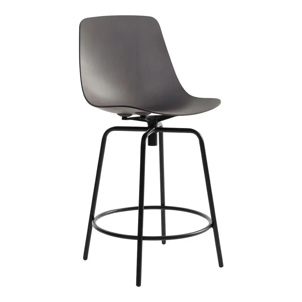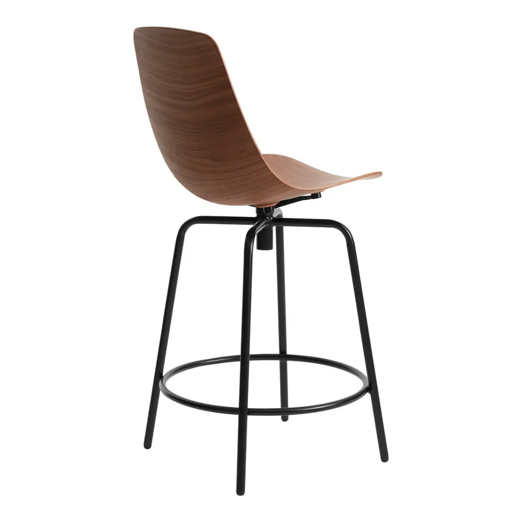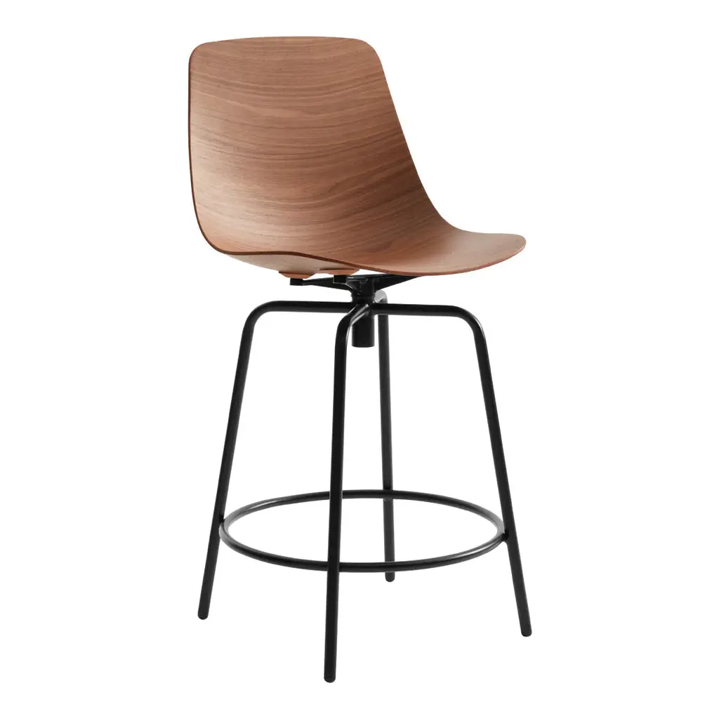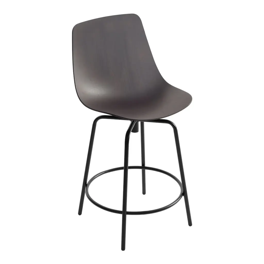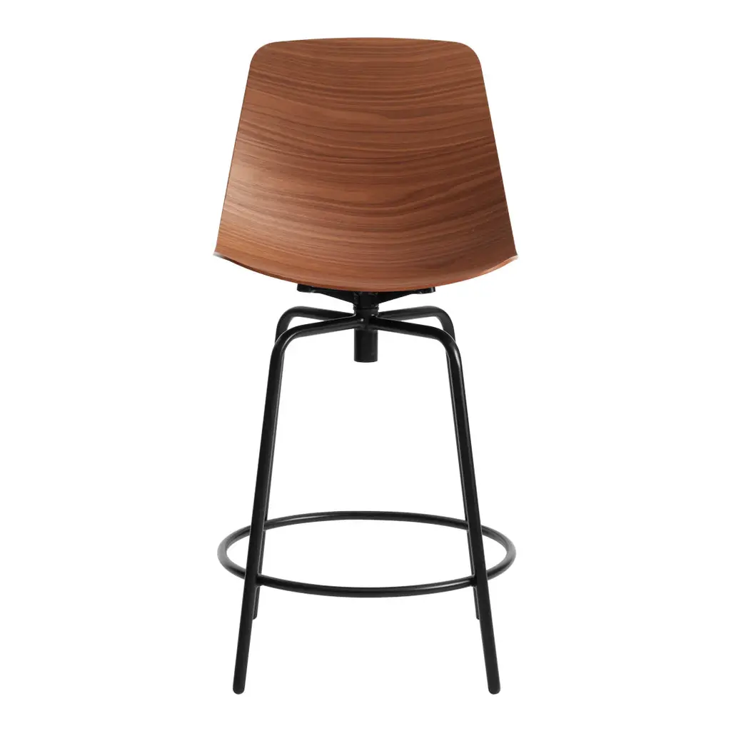 The Blu Dot Clean Cut Counter Stool brings sophisticated movement to counter-height seating through its elegant combination of organic wood forms and precision engineering. This refined stool elevates kitchen islands and counter spaces through thoughtful details that enhance both visual appeal and functional performance.The heart of the design lies in its 360-degree swivel mechanism, which introduces dynamic movement to the otherwise static form. This engineering feature allows for effortless repositioning without disrupting conversations or activities—perfect for social kitchen environments or multi-functional counter spaces. The absence of an automatic return mechanism maintains the natural, intuitive quality of the movement.Shaped from 3D bent plywood with wood veneers, the seat shell creates an organic counterpoint to the precision-engineered steel base. The gentle curves and ergonomic contours offer remarkable sitting comfort despite the stool's minimal visual profile. This sculptural seat showcases Blu Dot's talent for creating forms that serve both aesthetic and functional purposes without unnecessary embellishment.The Clean Cut Counter Stool can be enhanced with optional leather or felt seat pads that introduce textural contrast and additional comfort while maintaining the design's essential simplicity. Protective glides safeguard floor surfaces, reflecting the thoughtful consideration of practical details throughout the design.BIFMA rated for safety and sustainability, the Clean Cut Counter Stool - Swivel Base embodies Blu Dot's design philosophy perfectly—creating furniture that enhances everyday experiences through a sophisticated balance of material integrity, functional innovation, and visual refinement. This isn't merely seating; it's an architectural element that elevates kitchen and counter environments through its quiet confidence and enduring quality.