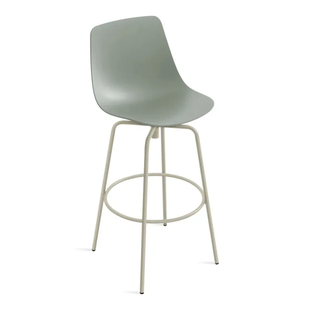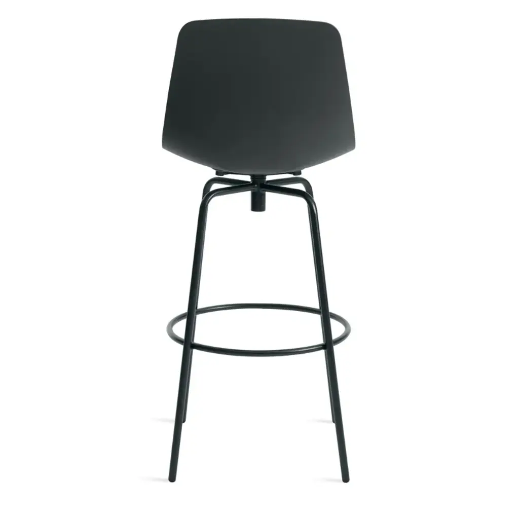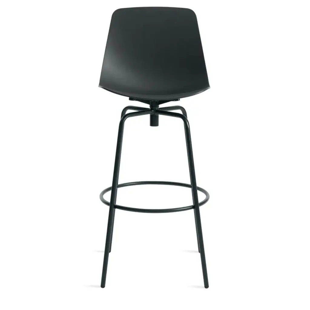 A clean, organic shape sets up a strong profile and a responsive seat for countless comfortable hours spent studying or snacking. Slim powder-coated steel legs make a simple statement, while a swivel base lets you keep your eyes on all the action. Add a seat pad for instant attraction.