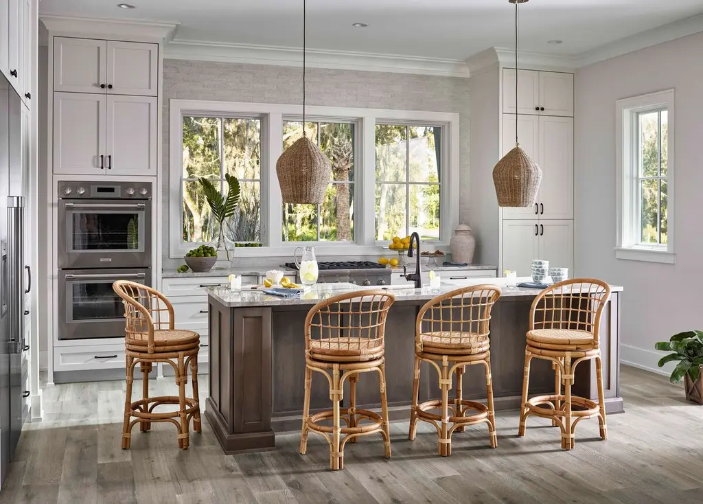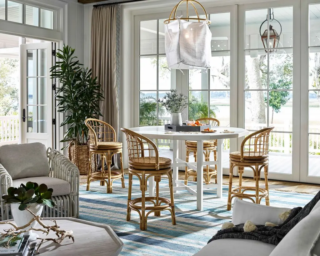 Bring home a touch of the tropics with this airy rattan counter stool. Not only is it breezy-chic, but it also has a swivel seat that makes conversations, TV watching, or keeping an eye on the kids much easier.
