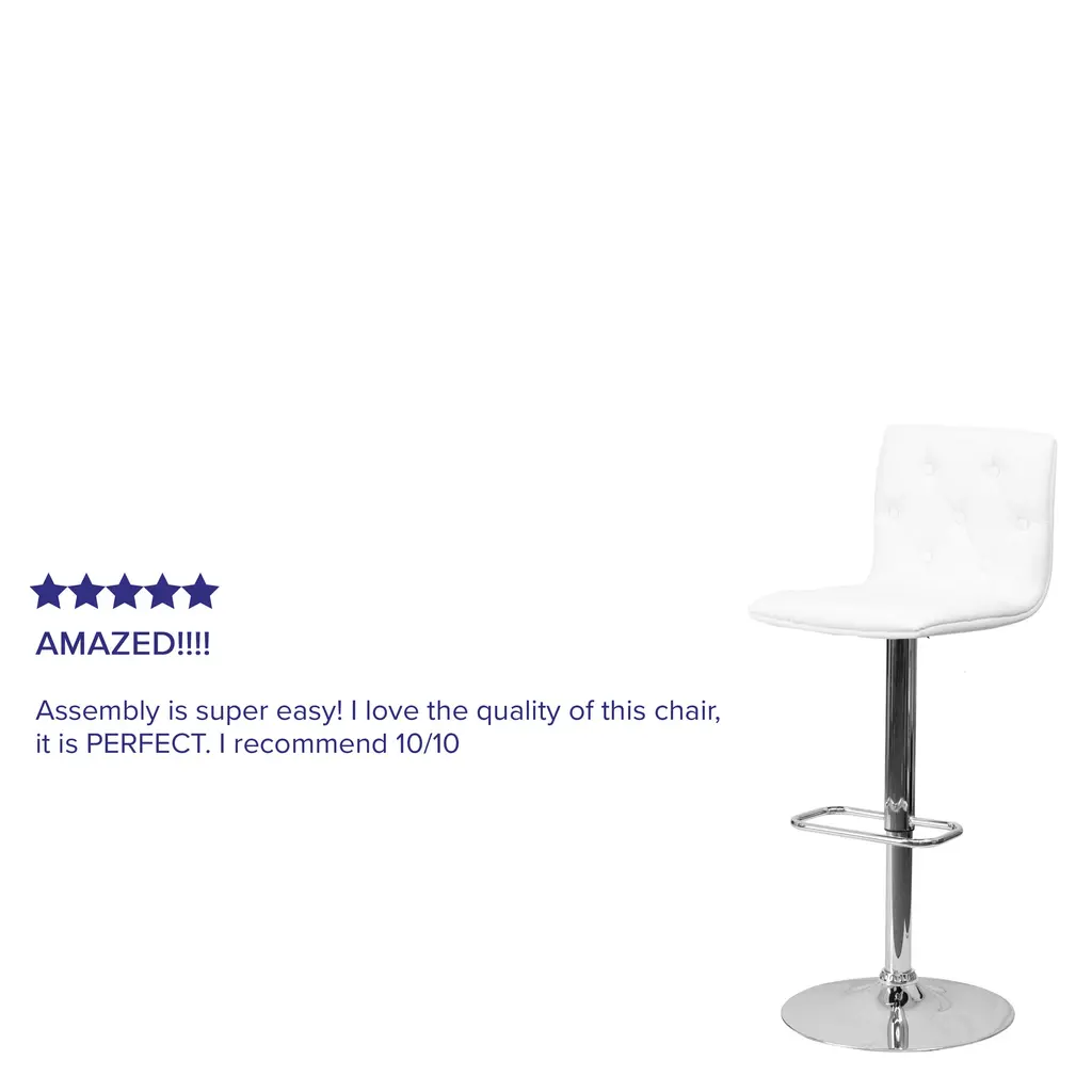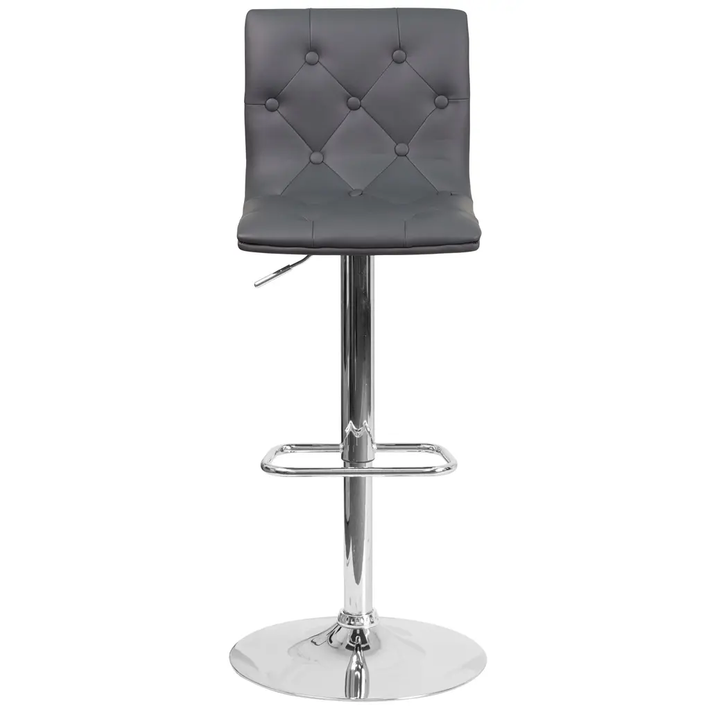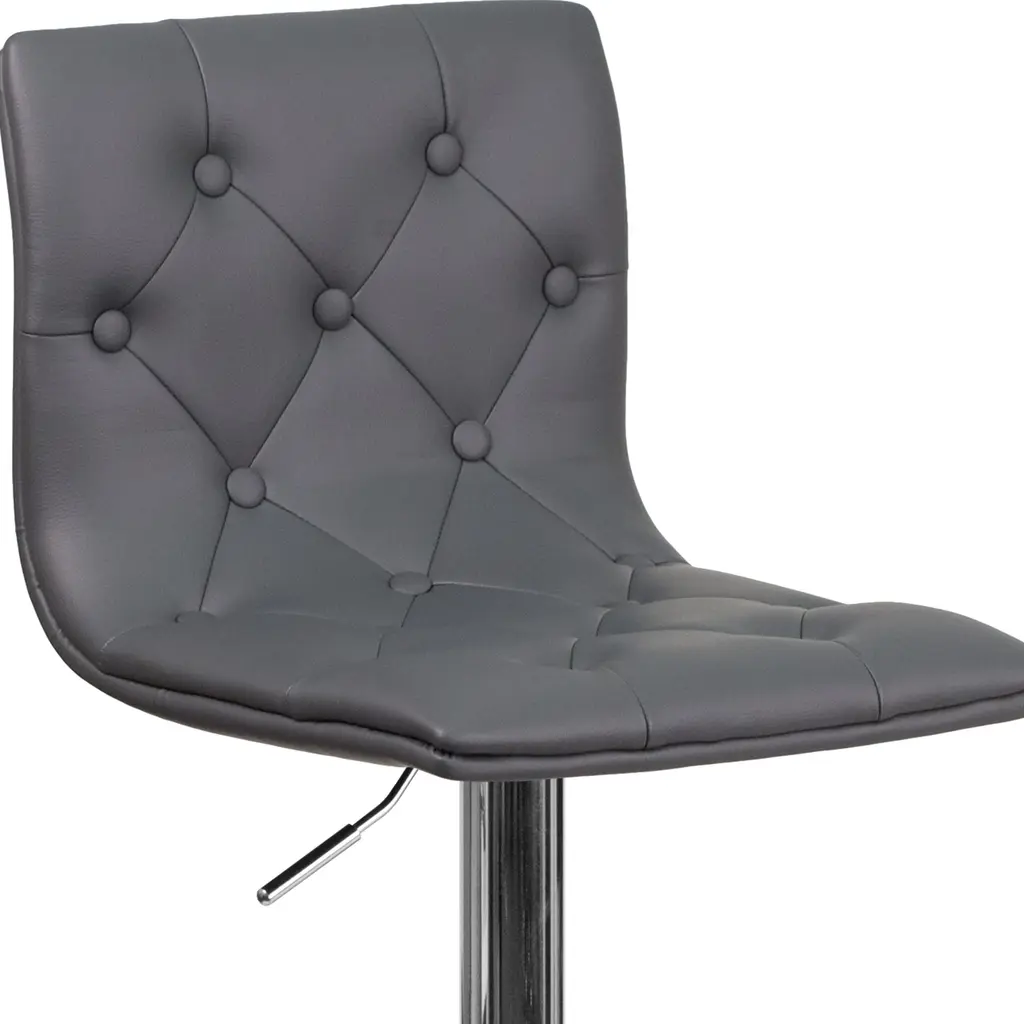 Contemporary Button Tufted Vinyl Adjustable Height Barstool With Chrome Base