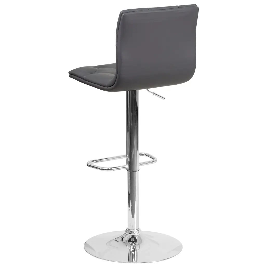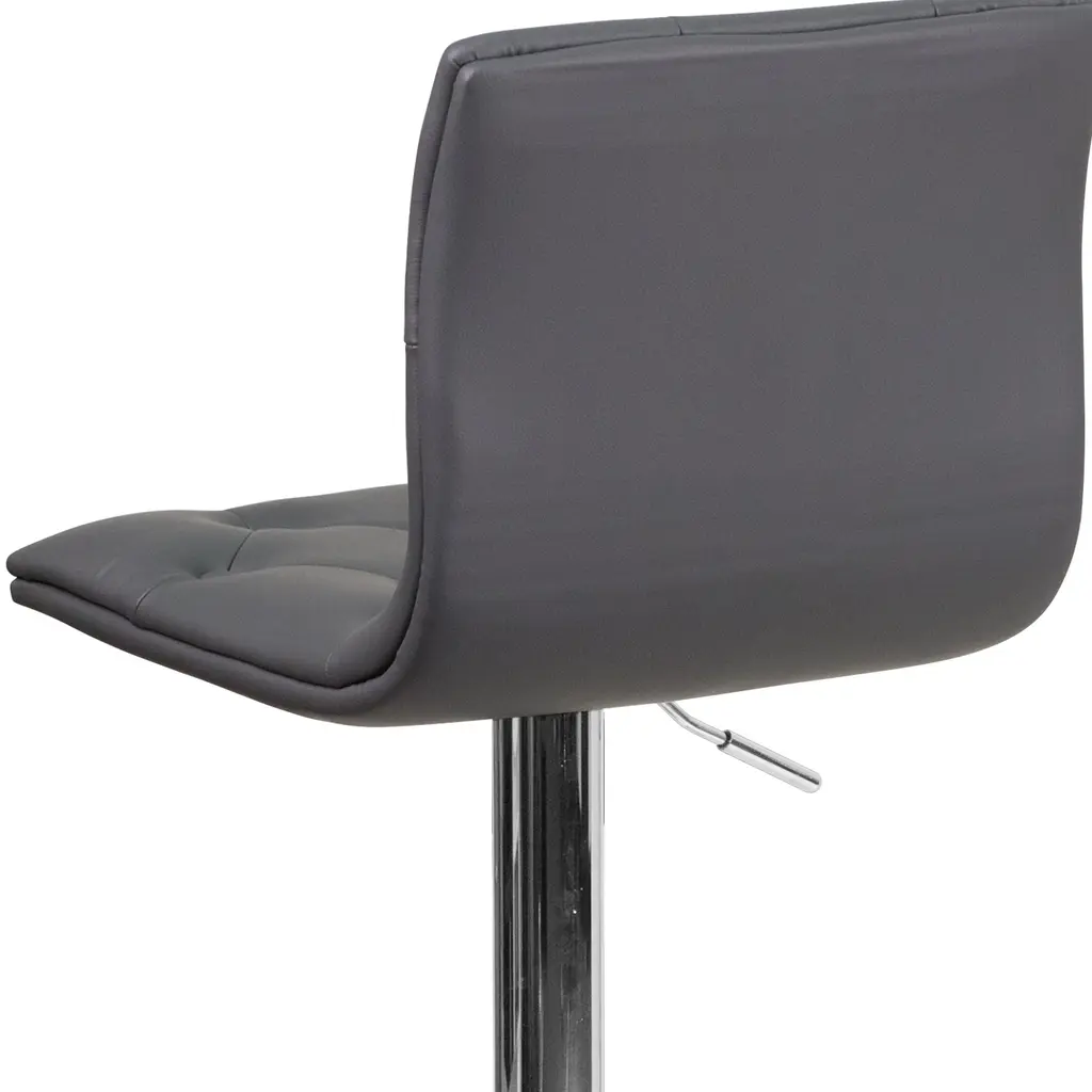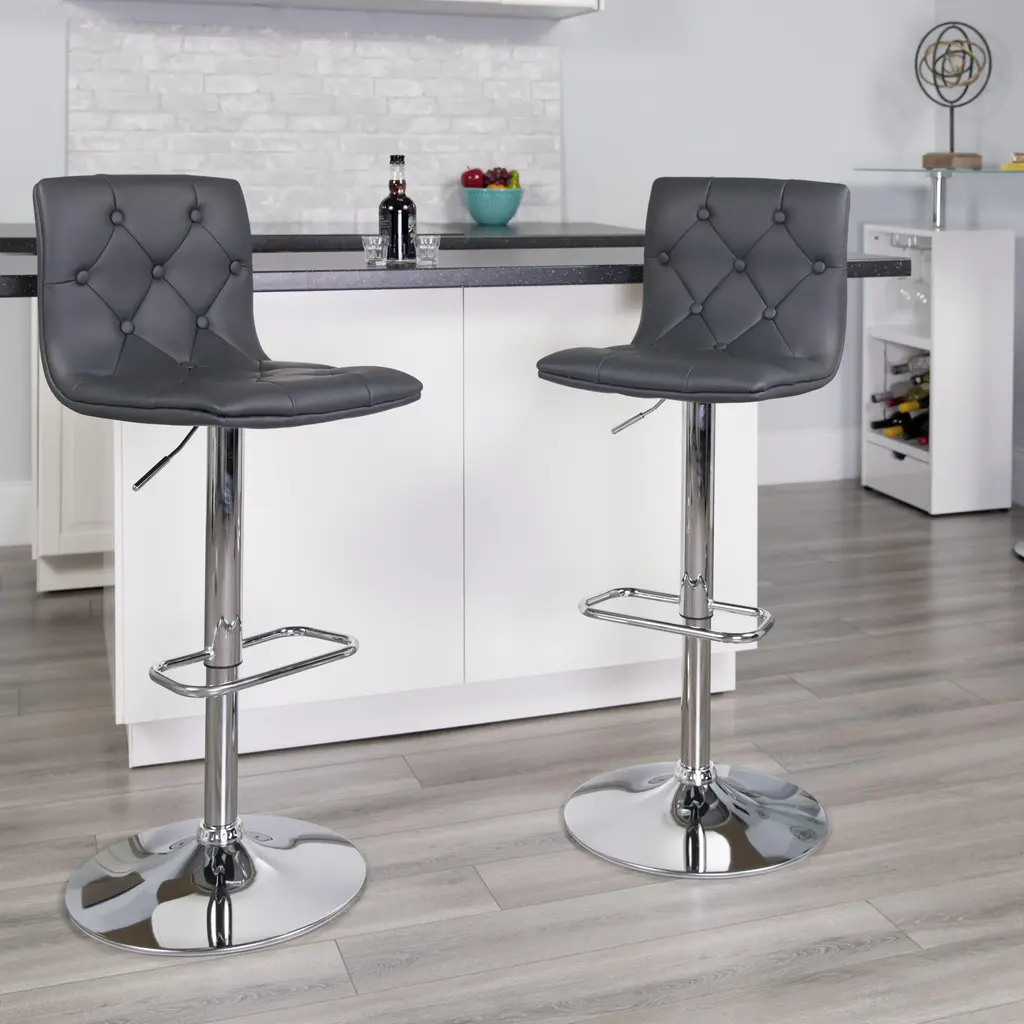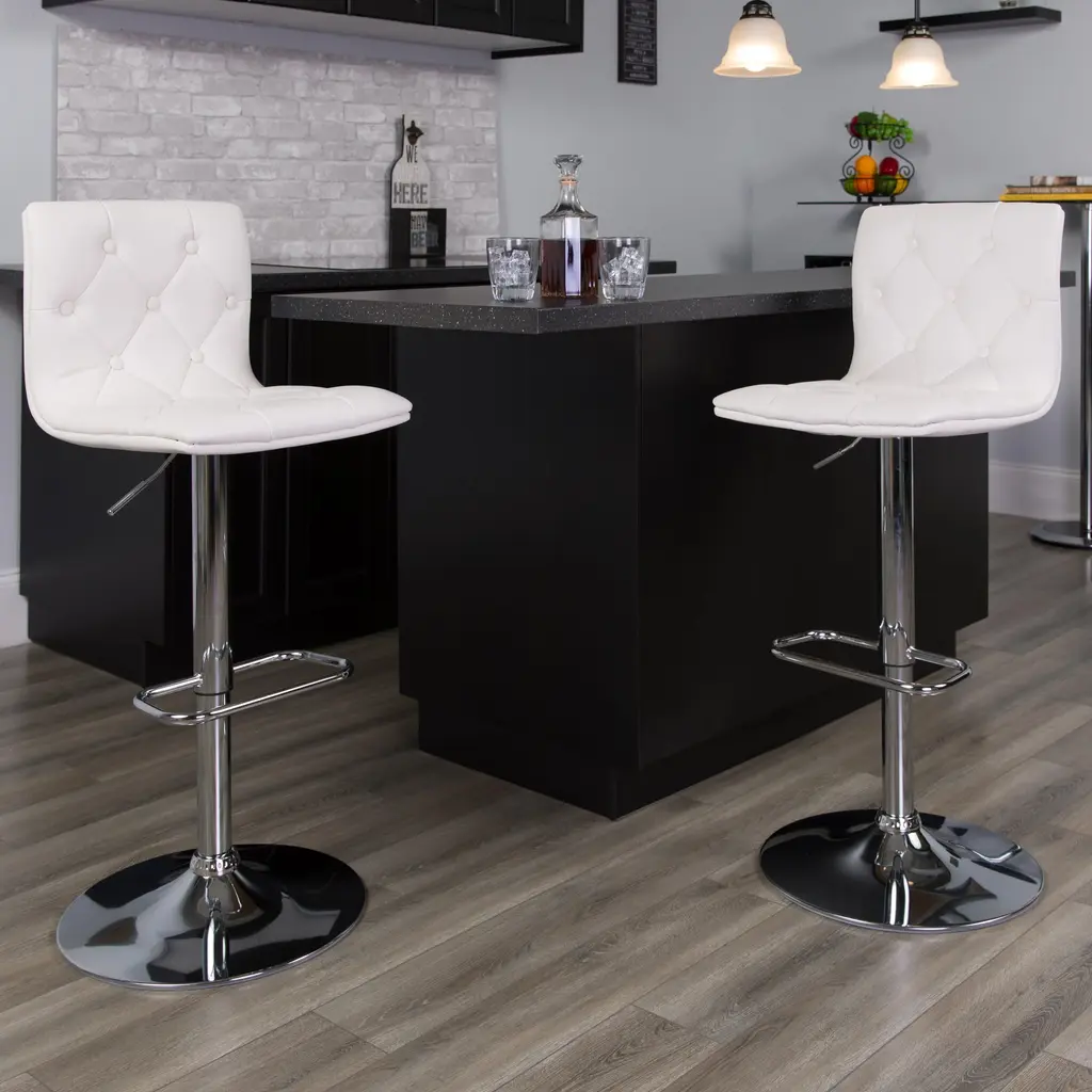 Contemporary Button Tufted Vinyl Adjustable Height Barstool With Chrome Base