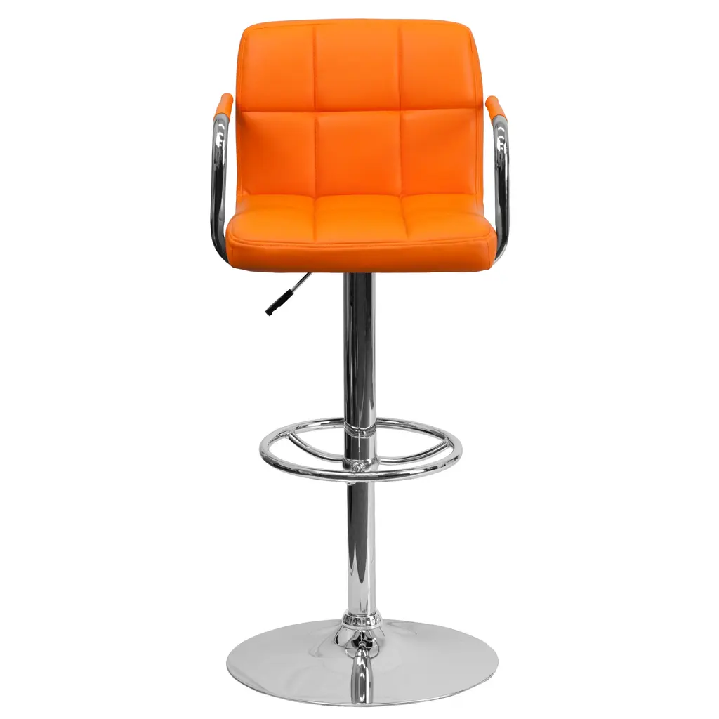 Contemporary Quilted Vinyl Adjustable Height Barstool With Arms And Chrome Base