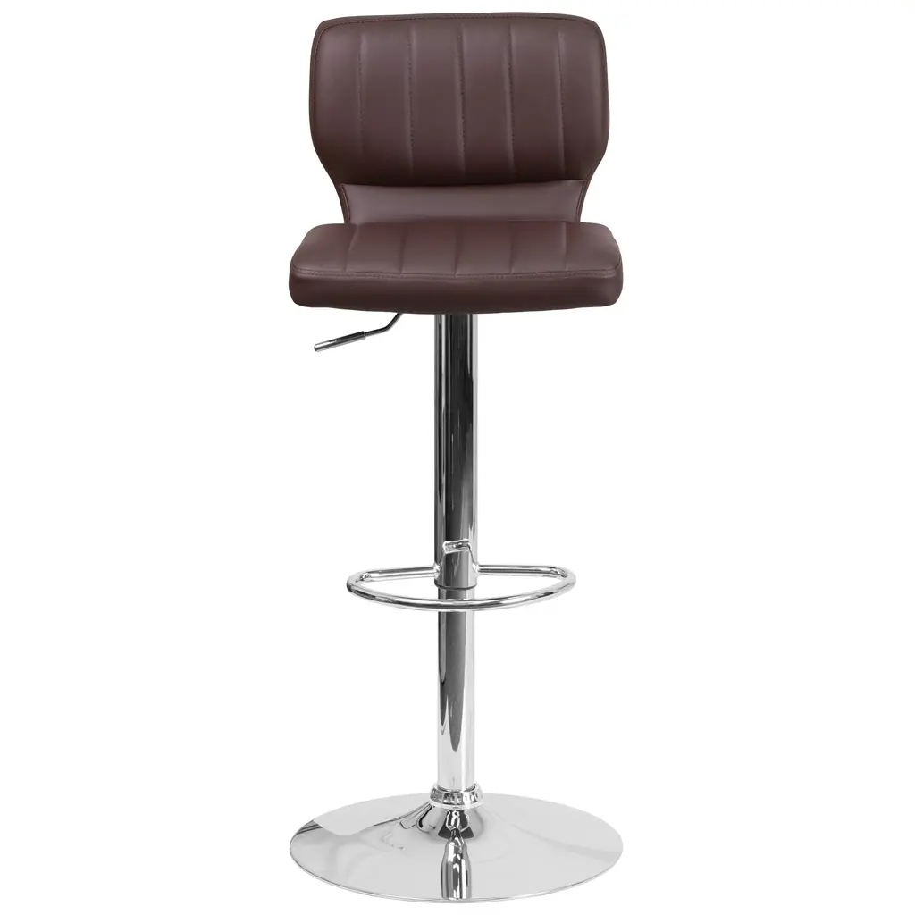 Contemporary Vinyl Adjustable Height Barstool With Vertical Stitch Back And Chrome Base