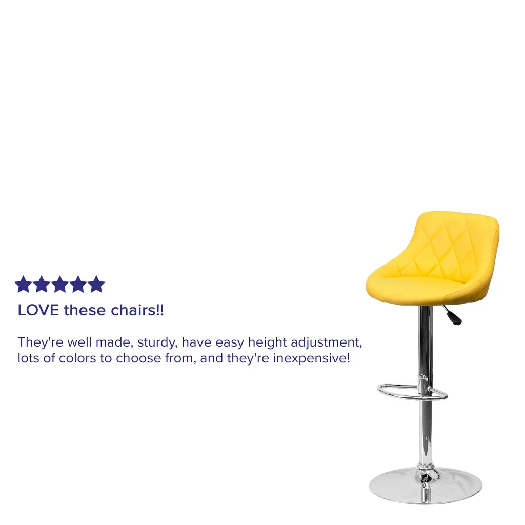 Contemporary Vinyl Bucket Seat Adjustable Height Barstool With Diamond Pattern Back And Chrome Base