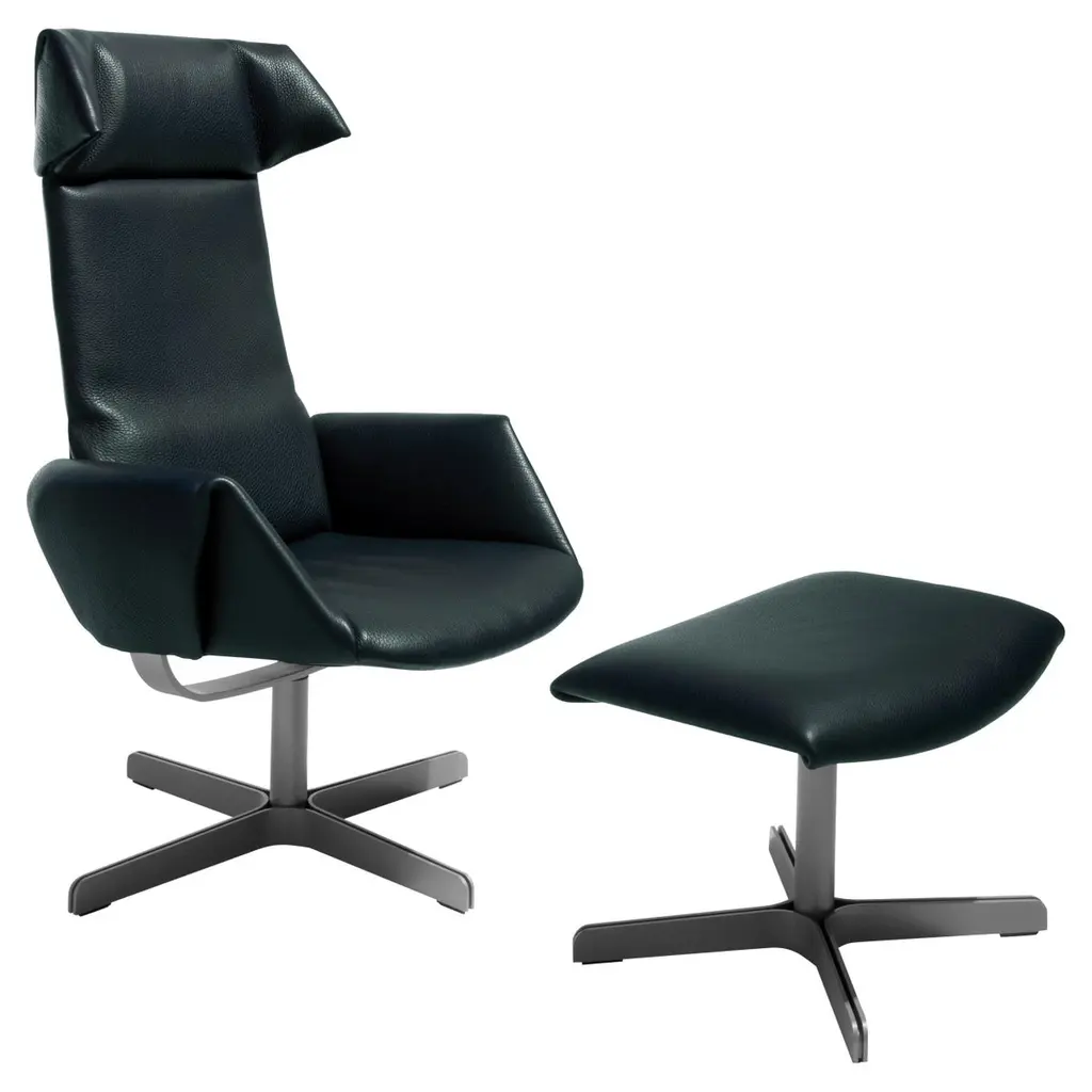 Customizable Gebruder 808 Swivel Leather Recliner & Ottoman By Formstelle