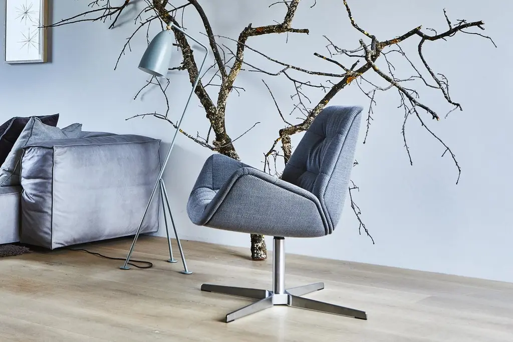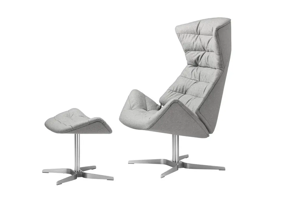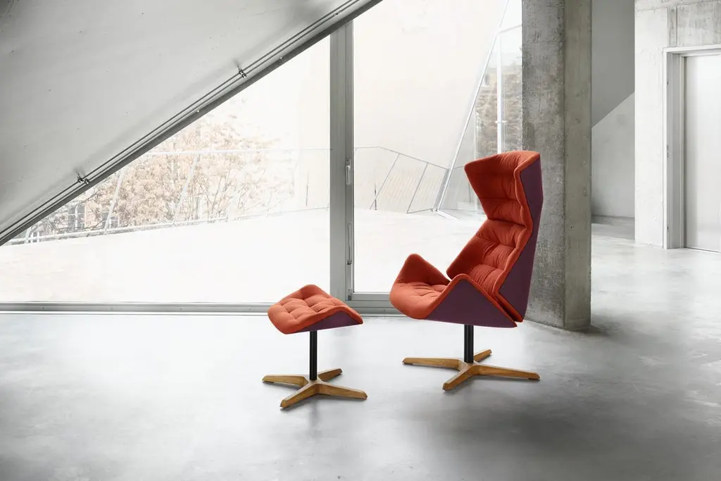 RANGE 808With the range 808, Munich based design studio Formstelle has created a lounge chair that combines maximum comfort with numerous possibilities for individualization. The lounge chair 808 plays with the contrast between a protective shell and an inviting openness, creating a place of retreat and calm. Its distinctive appearance is created through a contemporary reinterpretation of the Classic wing chair, the shape suggests an elegant cocoon that embraces the person sitting in the chair and communicates a feeling of security. Another striking characteristic is the comfortable upholstery with its welcoming soft wave effect. This inner cushioned core establishes an intriguing contrast with the angularity of the outer shell. A clever mechanism allows users to individually adjust the position of the chair.The compact lounge chair 809 functions as a “small brother” of the successful lounge chair 808, and as a place of retreat in smaller rooms or in groups, and in combination with the larger chair or the low side tables 1808 and 1809. A footstool rounds off the range.The swivel frame of the lounge chair 808 is available in a number of different versions. The mechanism hidden inside the chair enables the variable adjustment of multiple seat and backrest inclinations through to a relaxing fully reclined position.The designers have created a distinct fabric for the lounge chair 808 in collaboration with the German textile manufacture Rohi: “Soul” is available in thirteen colors and impresses with a high-quality new woolen yarn and a multidimensional honeycomb structure that lends depth to the fabric.