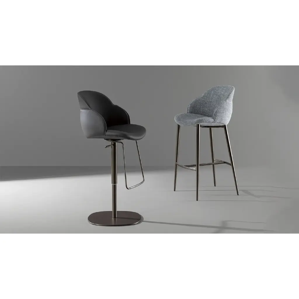 Softness and comfort are the main characteristics of the kitchen stool My way too. An element that catches the attention is the considerable padding of the body that wraps it in a precious shell. The My way too stool is available with fixed or swivel metal base while the seat and back are covered in fabric, eco-leather or leather. The variety of finishes available for the base and for the covering allows ample freedom of customization for a close dialogue with the surrounding environment.