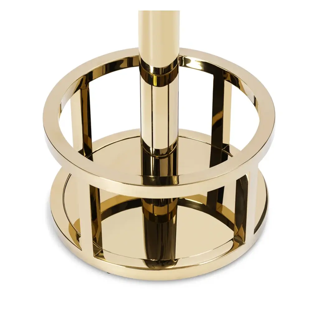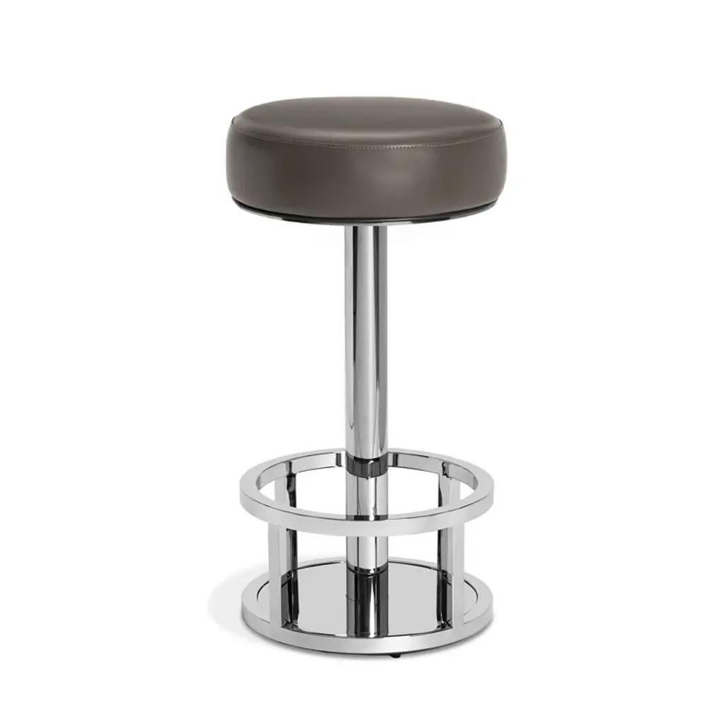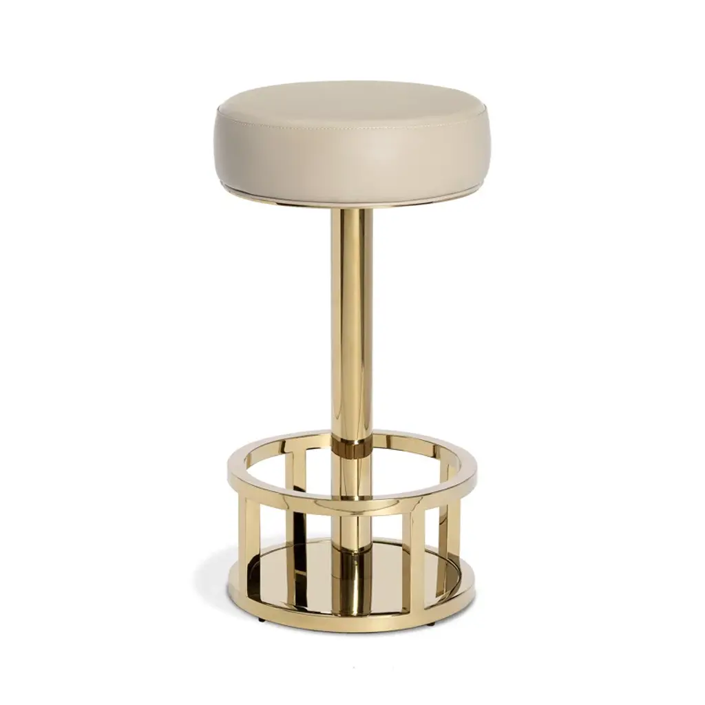 Topped in faux leather, the polished brass-finished Drake Stool brings together a retro silhouette with an industrial edge, plus the fun of a swivel.