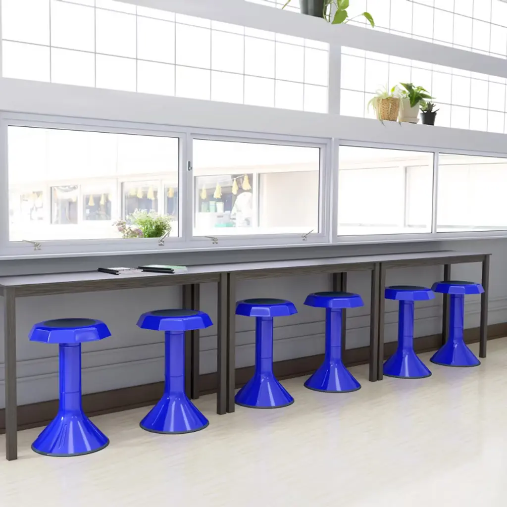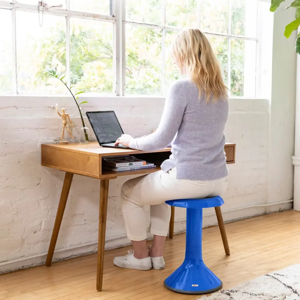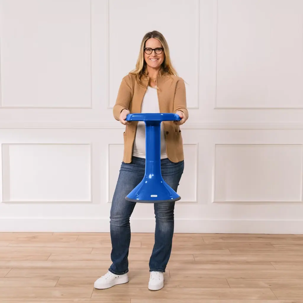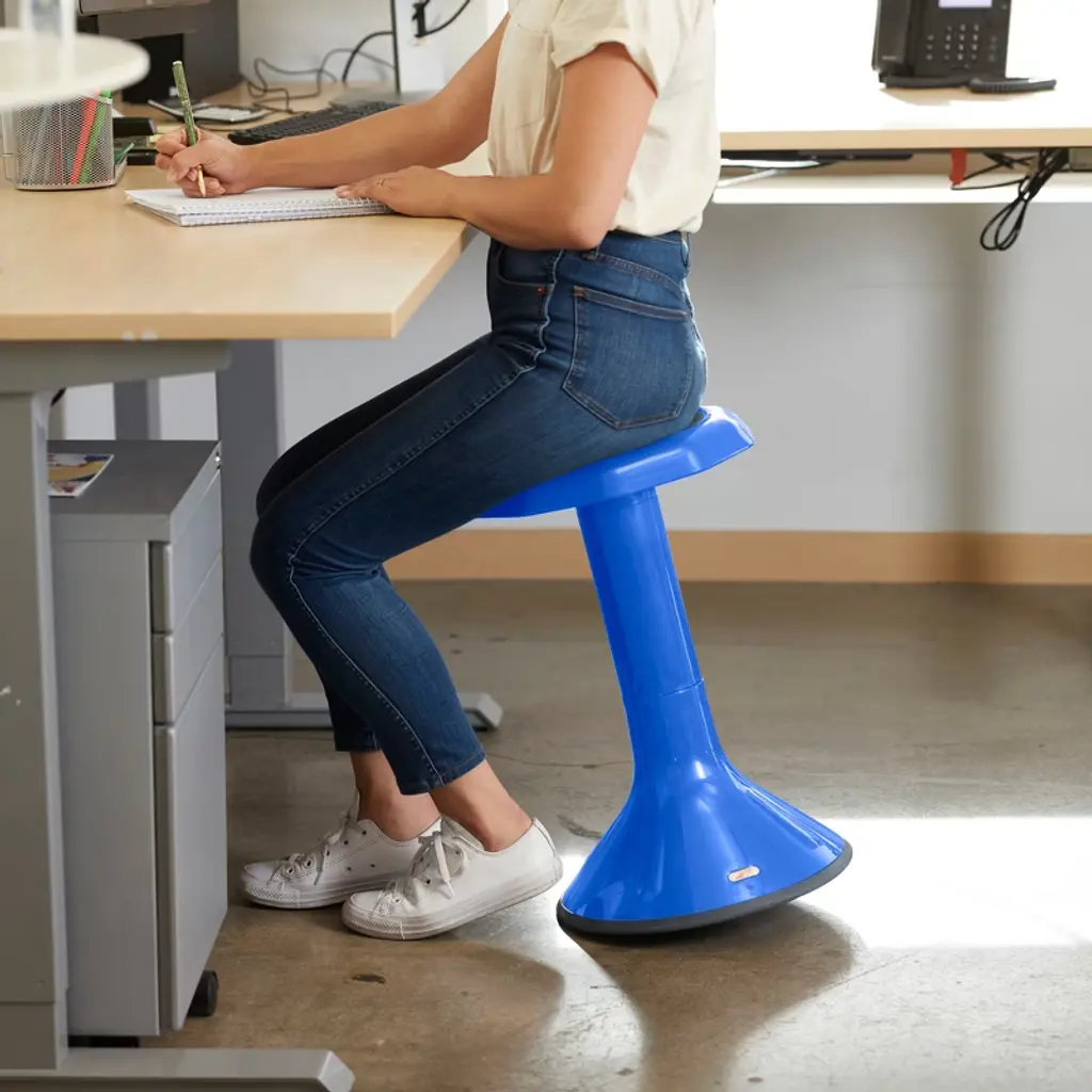 ACE (Active Core Engagement) Stools support the body’s natural need for movement. Seats that rock, tilt, and swivel allow for freedom of movement and encourage good posture and alertness while learning. This movement stool features a non-slip seat and rounded rubberized base that helps keep the chair in place on hard or carpeted surfaces. Designed for everyday use in schools, homes, or offices, these functional and colorful stools are a fun way to provide extra seating in any learning space. Continuous small movements help engage the body and brain, aiding concentration without distracting others nearby, while also supporting balance and coordination. The lightweight and adaptable seat is the perfect grab-and-go stool for taking the classroom indoors and out. Quickly and easily rearrange workspaces to create a dynamic collaborative environment between students or use for individual work study. For a precise fit, measure the user’s leg from the floor to the bend at the knee and select the closest seat height.