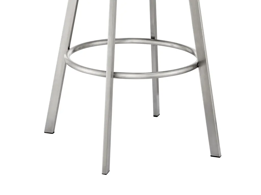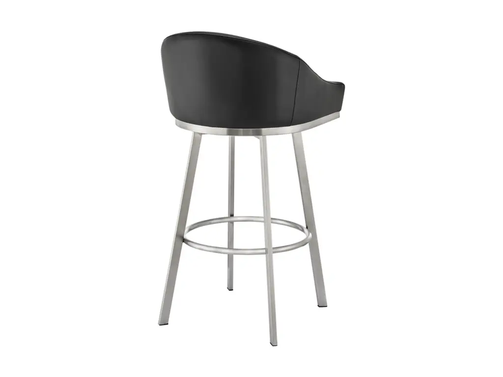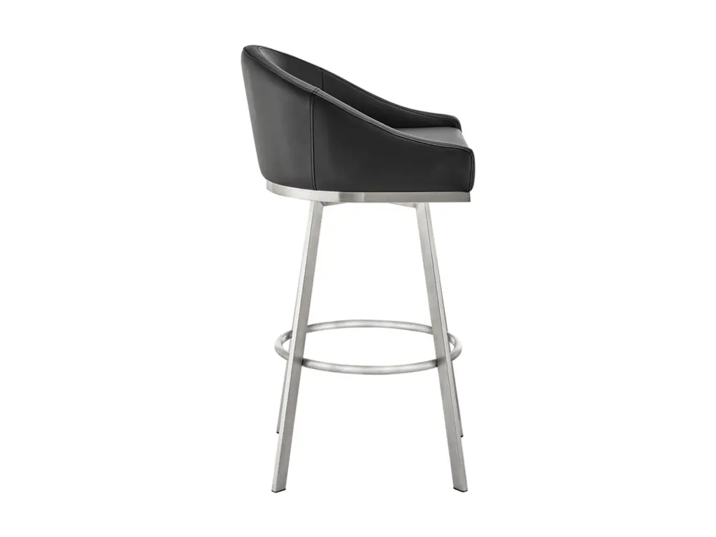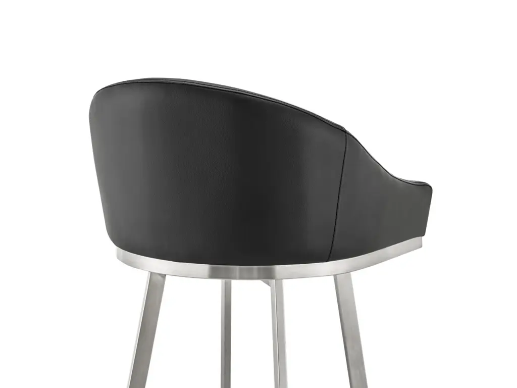 Create an inviting and comfortable setting with the Eleanor counter height bar stool in faux leather and metal by Armen Living. This bar stool offers a perfect blend of style and comfort, featuring a barrel-style seat and a sturdy metal base. It is upholstered in durable faux leather, known for its resistance to cracking, staining, fading, and UV-resistance. This modern stool is versatile and ideal for use at your kitchen island, pub table, bar table, or adjustable desk. Universally suitable for various settings in your home, it offers both style and convenience. The 360-degree swivel function ensures maximum mobility, and the smooth-glide swivel allows you to change directions with ease, making it your new favorite seat. The Eleanor swivel chair seamlessly incorporates into any home decor and is available in your choice of counter or bar seat height.