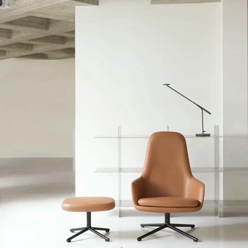 As a companion piece to designer Simon Legald’s comfortably proportioned lounge chair, the Era collection adds a curvaceous footstool with similarly generous proportions and a convenient swivel base. Perfect to extend the sense of relaxation when reading, watching TV or even grabbing a nap, it pairs with both the seating’s high-back and low versions.