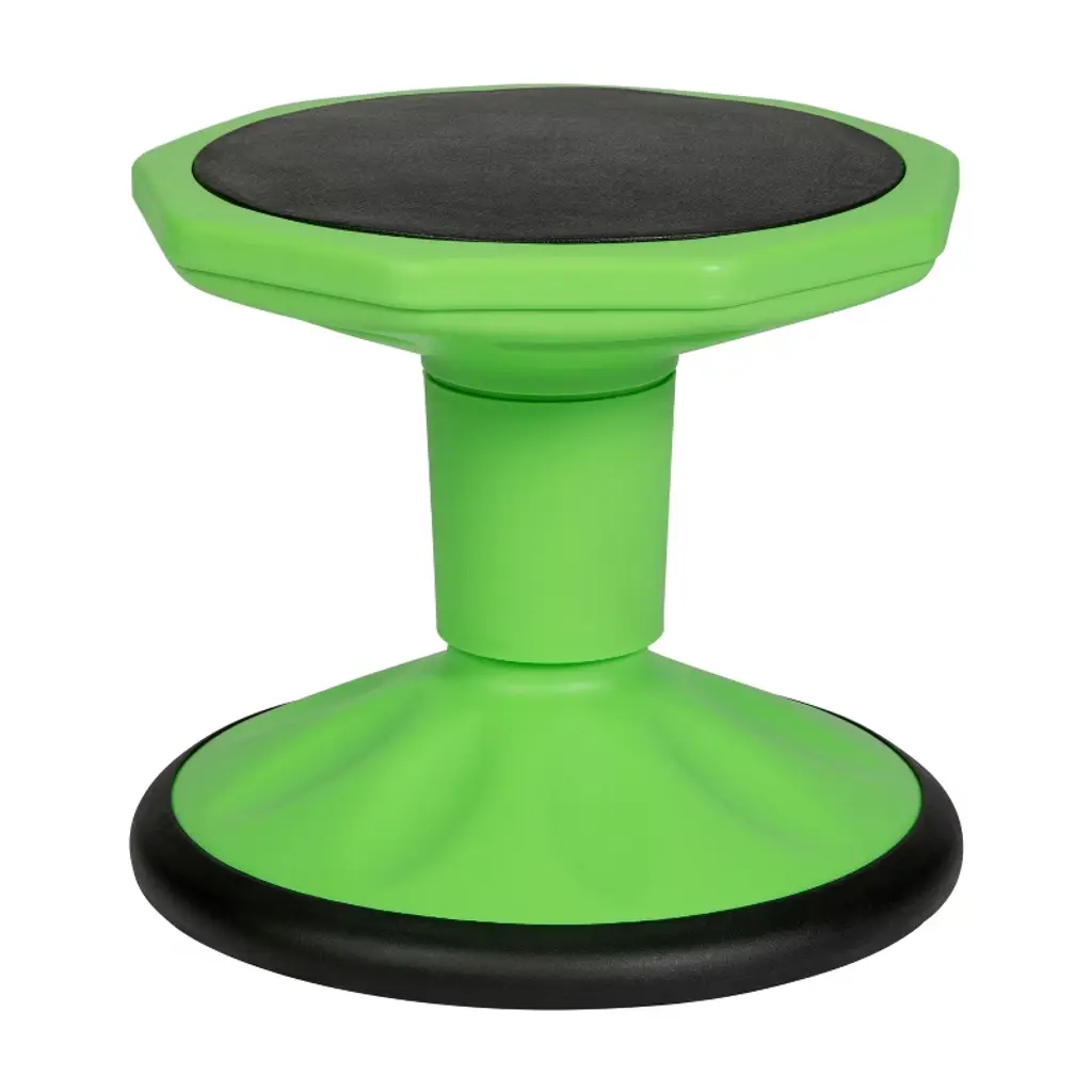 Whether you're in the classroom, run a daycare, or have children at home, fidgeting and wiggling can make eating, reading, or coloring a chore for some kids. Help is on the way with the flexible nature of this active learning chair with a 12" seat height. With 360° swivel and up to 10 degrees of wobble in any direction, elementary aged kids can rock, tilt and swivel without tipping over and let out pent up energy to help maintain concentration. Not only does this flexible seating support the body's natural need for movement, it is safe and sturdy as well. A rubberized seat and durable plastic frame hold up to 300 lbs. static weight capacity while the non-slip rubber bottom ensures the chair stays in place on hard or carpeted flooring surfaces. As an added bonus, this classroom stool engages core muscles to help children develop good posture practices while strengthening their core muscle groups. Highly adaptable and mobile, this stool for active sitting has built-in handles and can easily be moved from one side of the room to the other or all the way across town with minimal effort. Best of all, no assembly is required so kids can start enjoying this alternative chair as soon as you receive it. Available in fun colors, you can mix and match or keep things uniform to match any decor