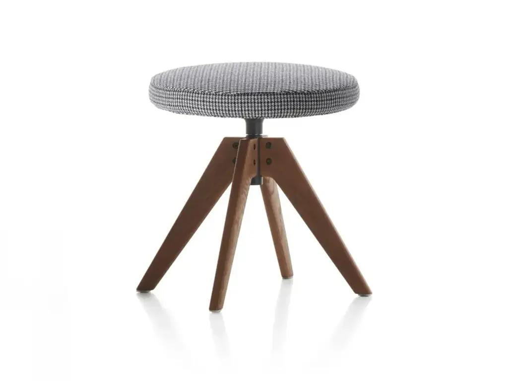 Born in 2009 from an idea of Jean Marie Massaud, Flow is the iconic seat collection developed to satisfy the different needs of contract and residential sector. The typological proposal of Flow ranges from Chair to Armchair, including Stool and Pouf. Plywood frame covered with non-deformable polyurethane and polyester wadding. The upholstery, covering around every part of the seat, is fully removable.Bases VN 4-legged wood base and 4-legged wood base, structure in ash* with transparent lacquer, available in natural, brown, bleached, or the new canaletto walnut chromatic finish. Lacquered aluminium coupling device in matt white or lead grey. Brushed stainless steel footrest on all versions. 360° swivel. Seat height available: 48 cm.*wood comes from sustainably managed forests.