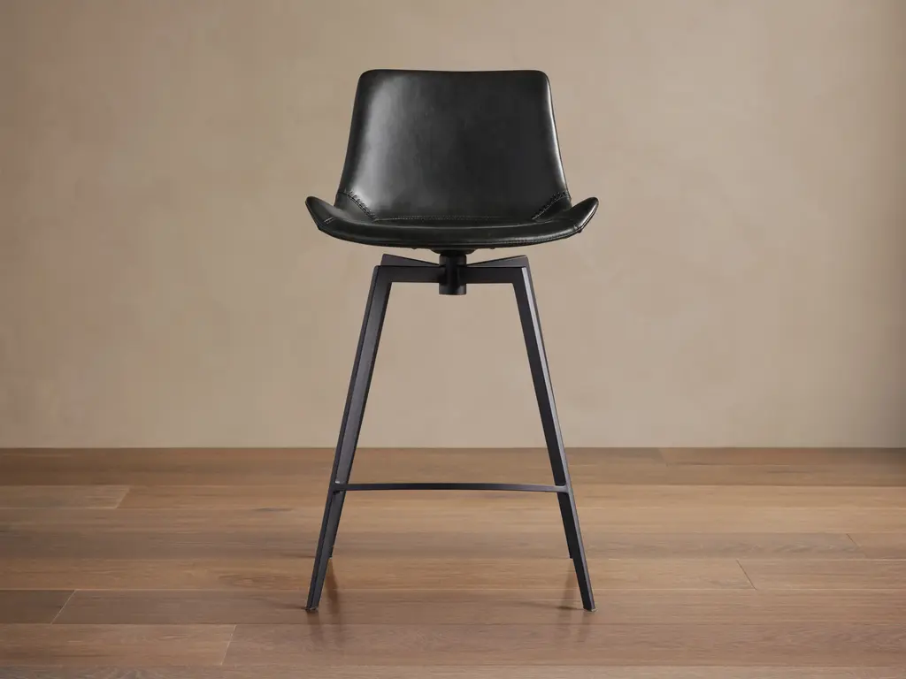 Our Gage Dining Seating Collection features an iconic scoop-seat silhouette accented by baseball-style stitching. Upholstered in faux leather, Gage’s seat is complemented by an iron frame with a uniquely textured, powder-coated finish designed to hold up to everyday wear.