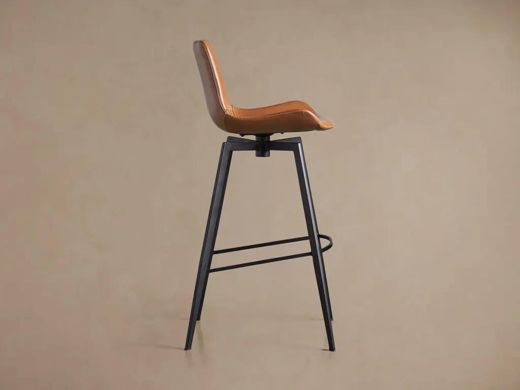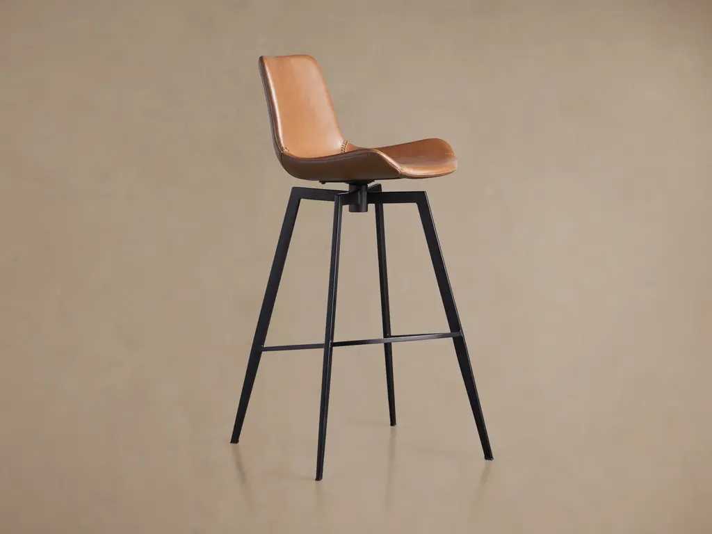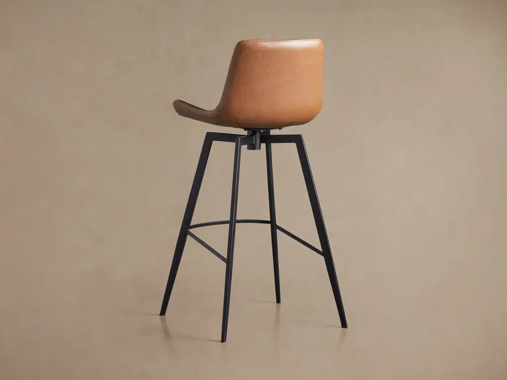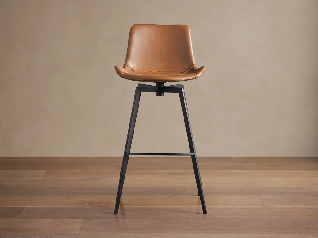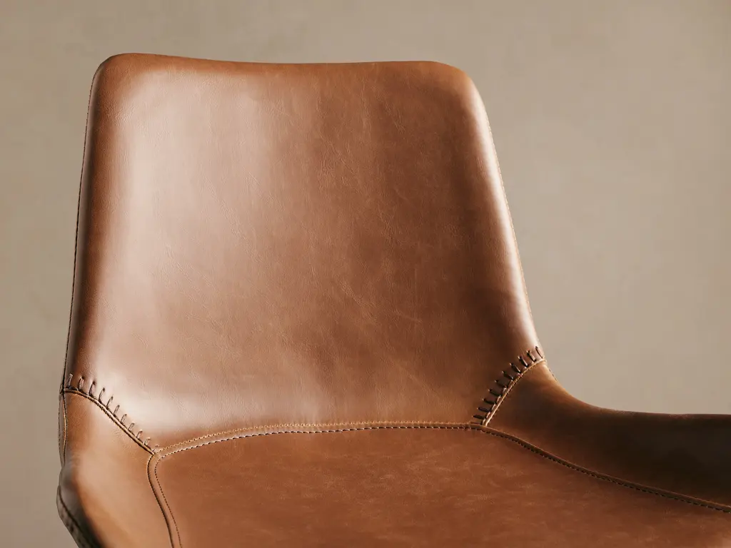 Our Gage Dining Seating Collection features an iconic scoop-seat silhouette accented by baseball-style stitching. Upholstered in faux leather, Gage’s seat is complemented by an iron frame with a uniquely textured, powder-coated finish designed to hold up to everyday wear.