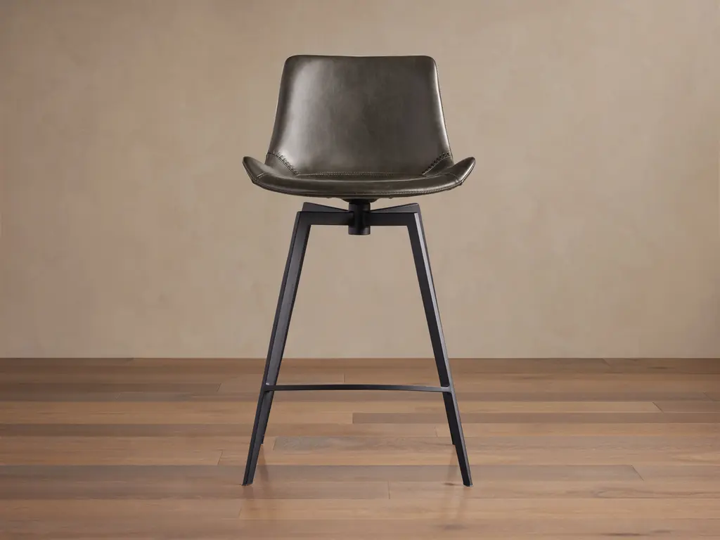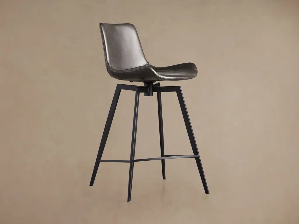 Our Gage Dining Seating Collection features an iconic scoop-seat silhouette accented by baseball-style stitching. Upholstered in faux leather, Gage’s seat is complemented by an iron frame with a uniquely textured, powder-coated finish designed to hold up to everyday wear.