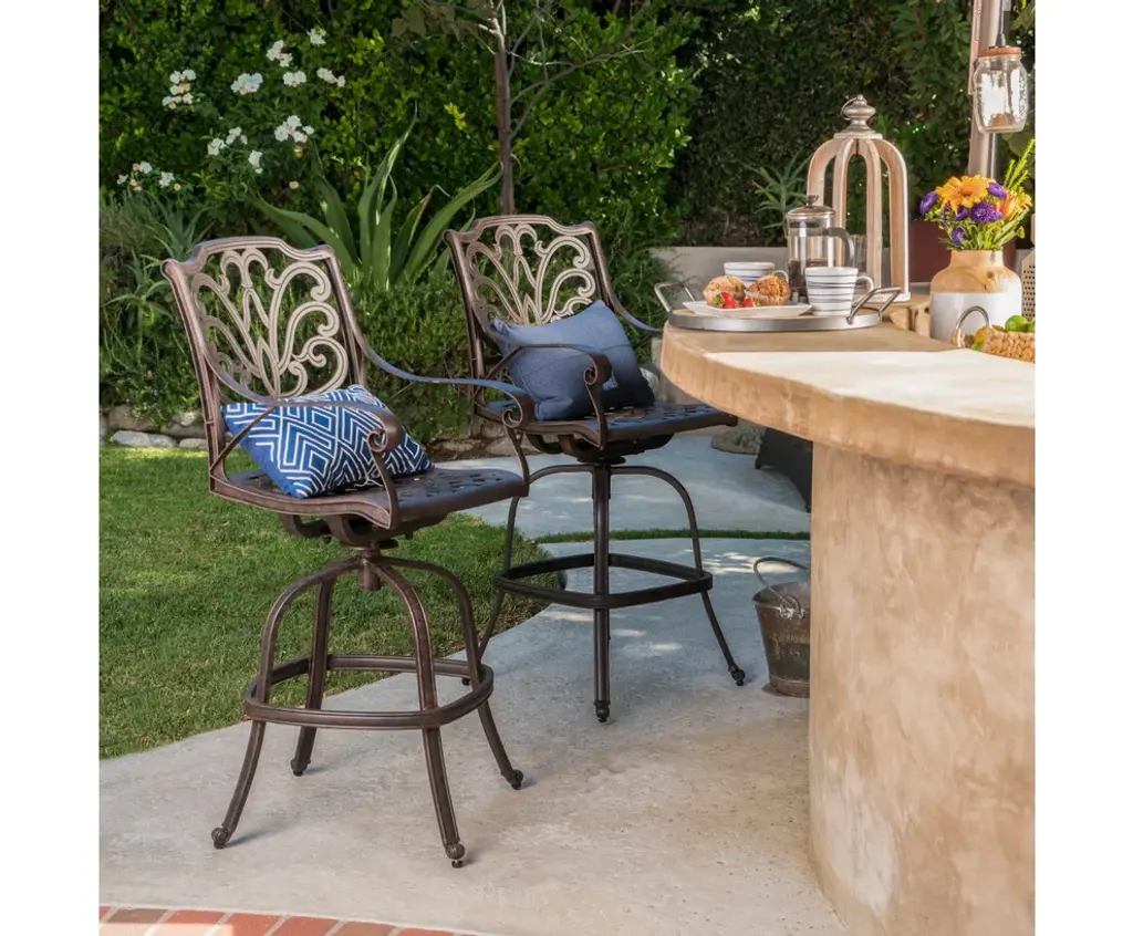 Gdf Studio Alexandria Outdoor Bronze Finished Cast Aluminum Barstools, Set Of 2