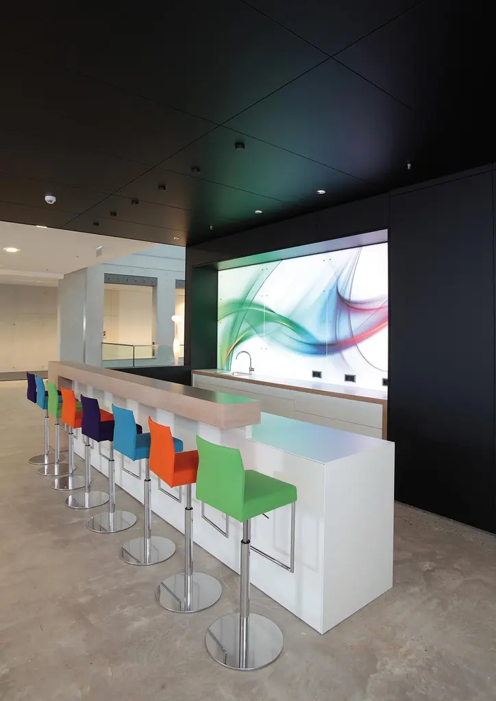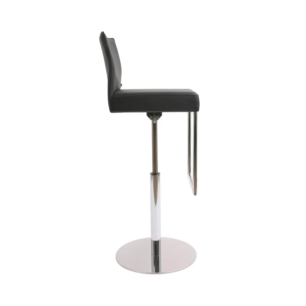 Price listed for leather.Fabric is less expensiveOne design concept — many prototypes: be they conventional chairs, catilevers or barstools including the pneumatic spring type, GLOOH, aside from having an extensive range and comfort to offer, conveys an unmistakable design. Small wonder that GLOOH has been distinguished with an international award on a number of occasions. Height adjustable swivel bar stool (max height is 106 cm) with pneumatic springs in 2 sizes. Round tubular steel frame in two versions. Moulded laminated plywood seat shell, upholstered foam padding. Seat and back upholstered and covered. Felt gliders.