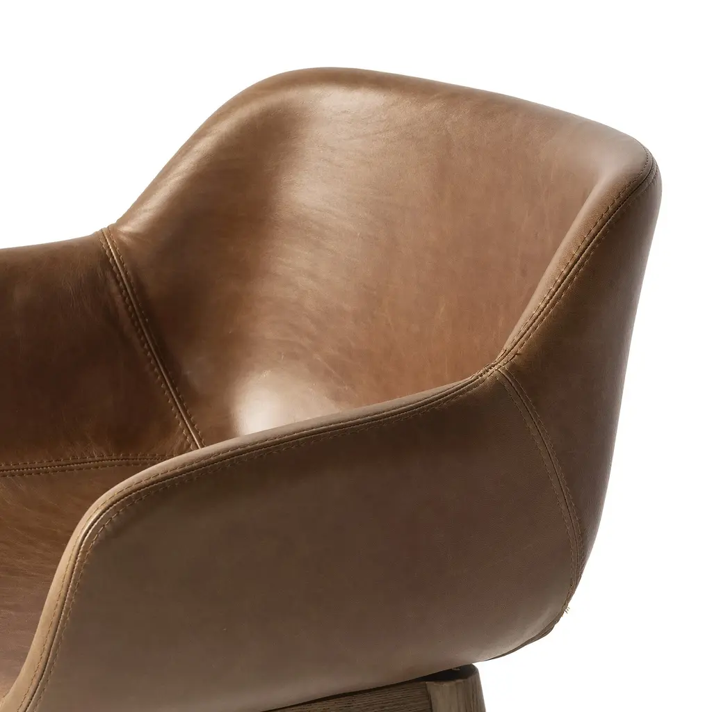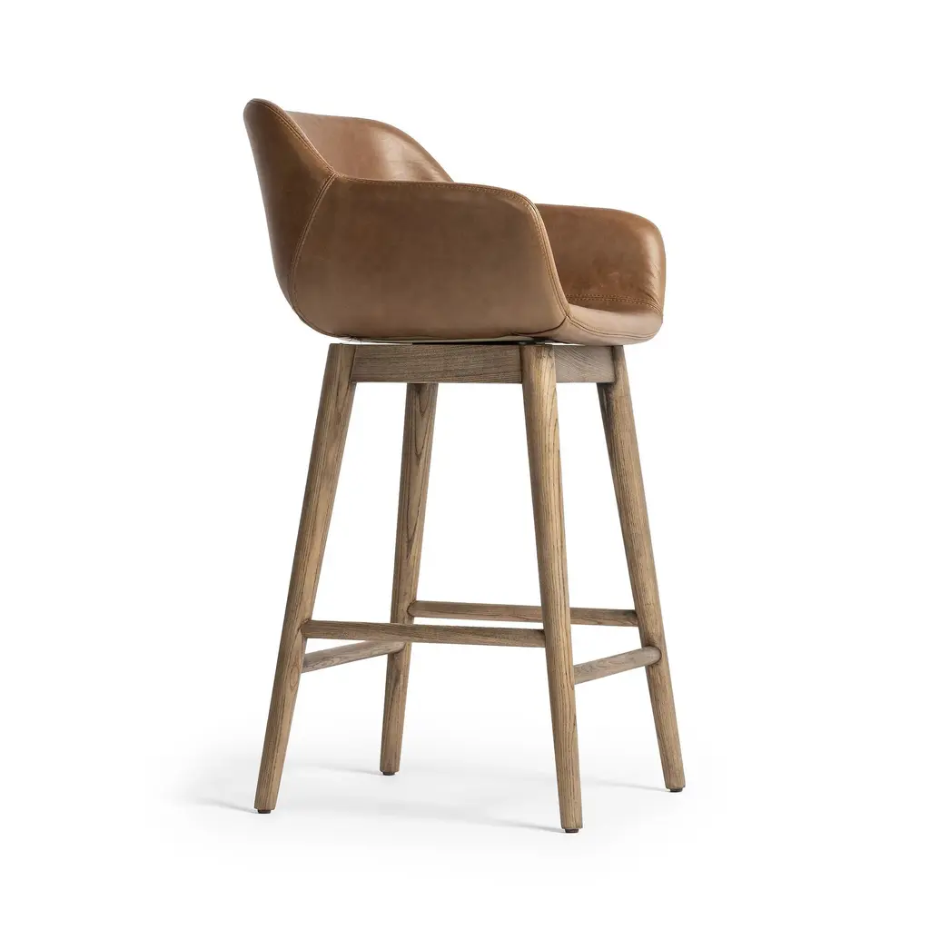 Elevate your home with the Hannah Swivel Stool from Four Hands. Experience the luxury of modern memory swivel and chestnut top-grain leather, accented by slim, tapered oak legs. This midcentury-inspired stool offers a sophisticated, exclusive touch to any space. Indulge in comfort and style. Highlights