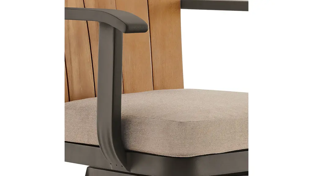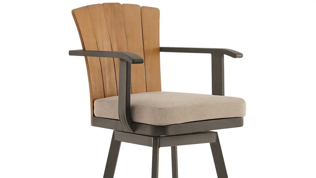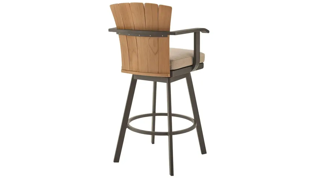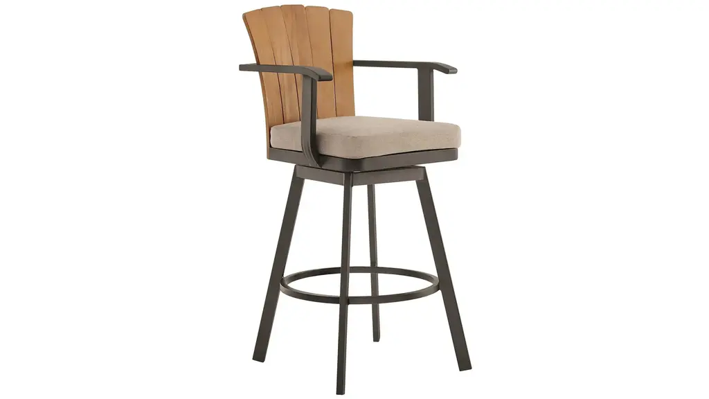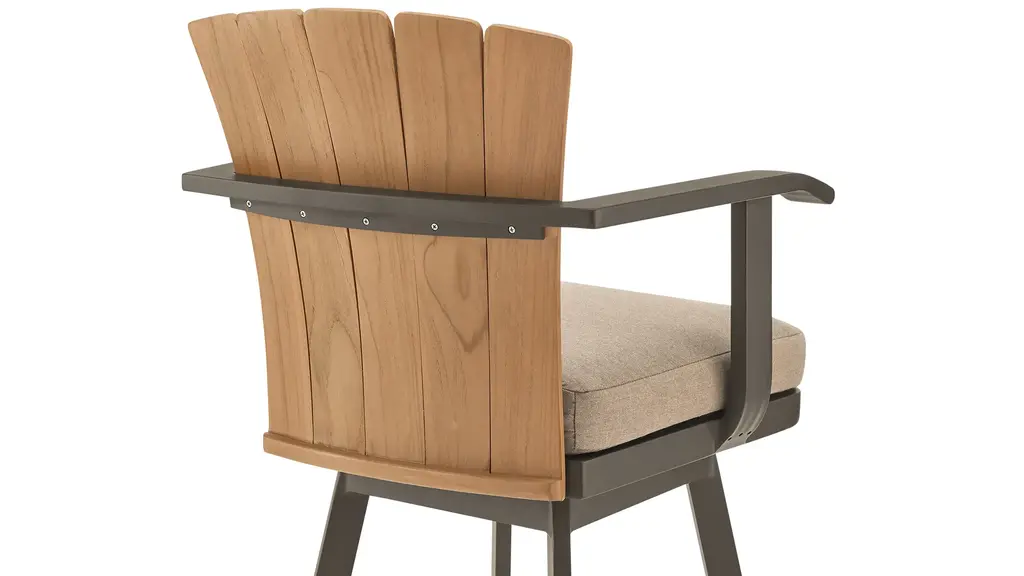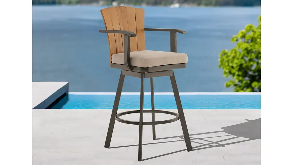 Introducing the Hazel 40" Outdoor Swivel Counter Stool - an exquisite fusion of contemporary design and natural beauty meticulously crafted to elevate your outdoor entertaining space. This versatile stool seamlessly combines the sleek appeal of aluminum with the timeless elegance of teak wood accents and plush cushions, creating a sophisticated and enduring piece of outdoor furniture. Crafted with precision, the Hazel 40" Outdoor Swivel Counter Stool boasts a sturdy aluminum frame, ensuring both durability and a modern aesthetic that effortlessly complements your outdoor setting. The water-resistant and UV-resistant features of the Hazel Stool make it a resilient choice for your outdoor space. The solution-dyed acrylic fabric ensures vibrant colors and resistance to fading, offering lasting beauty in the face of changing weather conditions. Whether under the sun's warmth or facing unexpected rain, this stool stands as a steadfast and stylish seating solution for your patio or outdoor bar area. Paired with hook and loop removable cushions, the Hazel Swivel Stool invites you to relax in both style and comfort, providing an inviting seating option for outdoor gatherings.