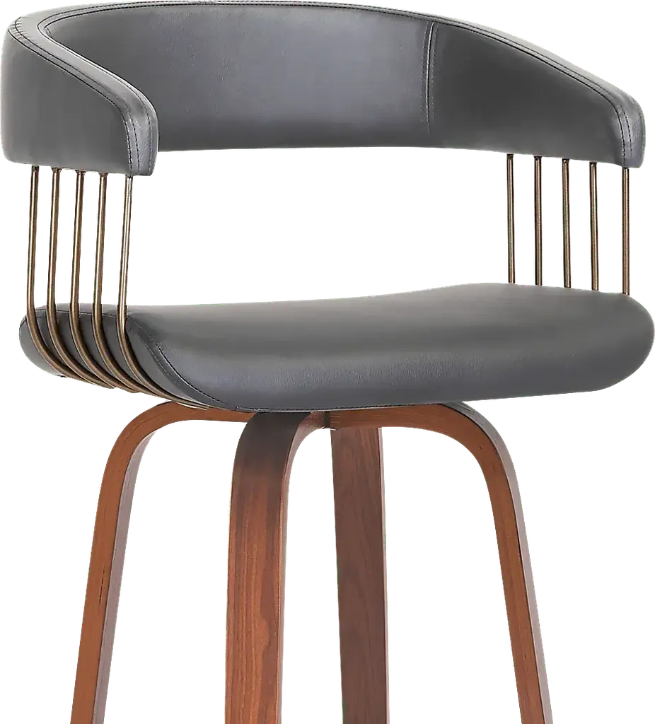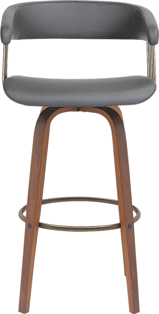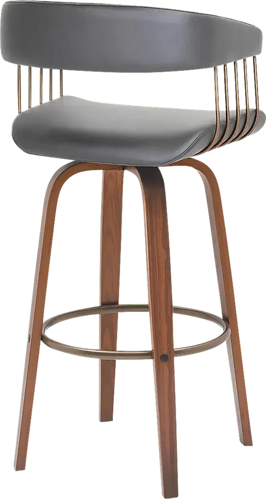Bring refined style and sophistication to your bar with the Hearttime I gray bar stool. A beautifully curved back and seat are held together with a crisp and clean-lined frame to make a statement in any corner. Its hugging barrel back and contoured seat is generously padded to offer sink-in comfort. Complemented with sculptural bentwood legs and a metal footrest, this stool blends eye-catching style with a dose of comfort and functionality. It is upholstered in faux leather which does not crack or fade easily, the material is both stain and UV resistant for easy maintenance and longevity. For supreme functionality, the barstool is fitted with a wonderful 360-degree swivel function, allowing you to join conversations with ease. Customer assembly is required.