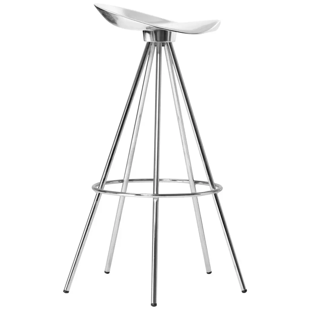 Originally created for the bar at a '90s Catalan discotheque, Jamaica has a distinctive but timeless look with an emphasis on its ergonomically shaped swivel seat in silvered aluminum or solid varnished beechwood. Offered in both bar or counter heights, the stool has a 5-legged steel tubing base that comes in a choice of complementary chromed or black-stained finishes.