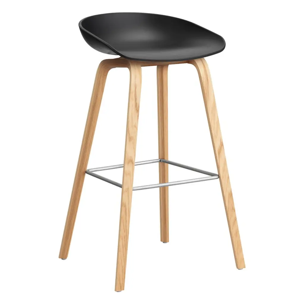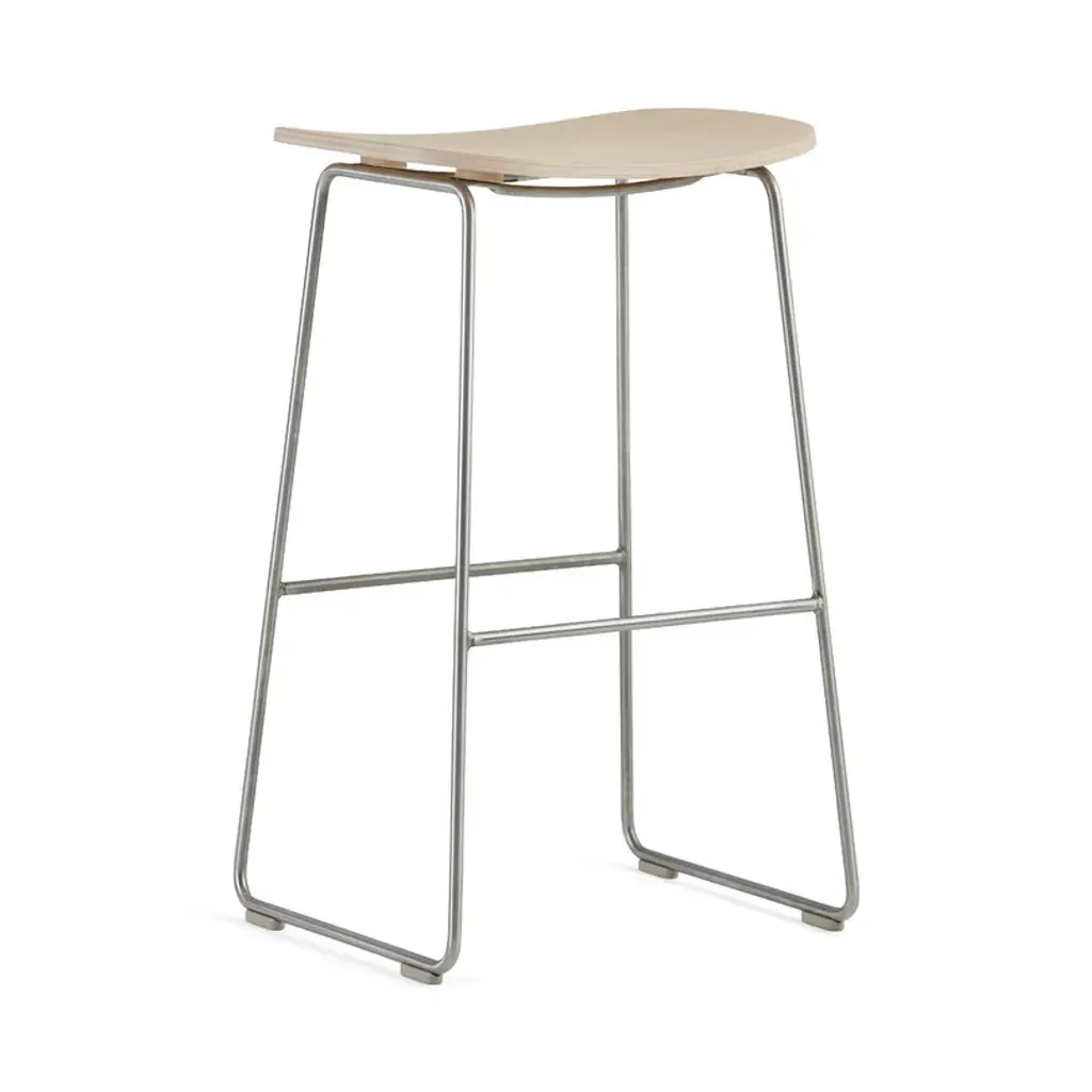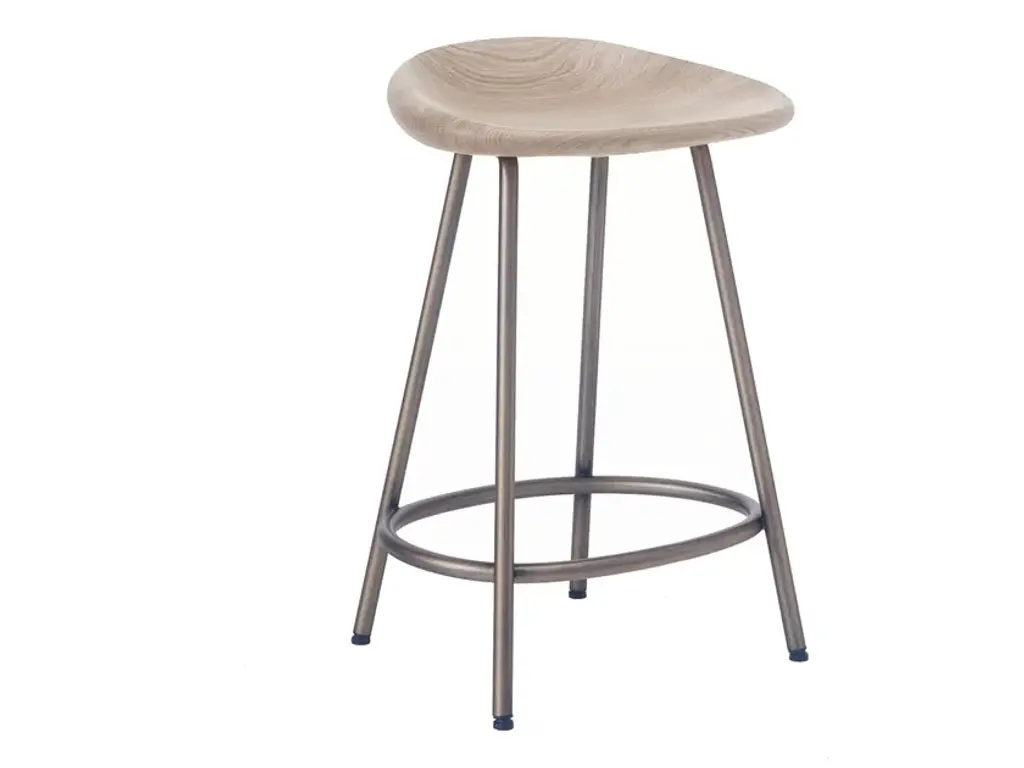 Originally created for the bar at a '90s Catalan discotheque, Jamaica has a distinctive but timeless look with an emphasis on its ergonomically shaped swivel seat in silvered aluminum or solid varnished beechwood. Offered in both bar or counter heights, the stool has a 5-legged steel tubing base that comes in a choice of complementary chromed or black-stained finishes.