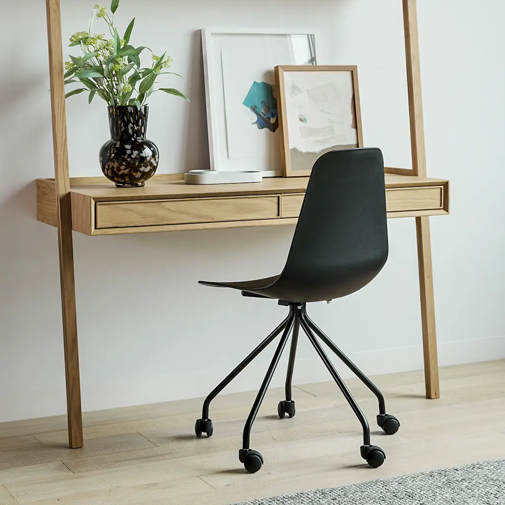 The Jamaica Swivel Mini Stool with Wheels from BD Barcelona is a clever classic that doesn’t show a day of its decades-established design. A playful creation that unites ultra-modern efficiency with a rustic saddle seat, it was designed by Pepe Cortes and ascends from a wheeled base via slim, strong steel legs to create something that straddles eras and design philosophies while creating casual comfort for homes and workspaces alike. Already a classic, the wheels give it go-anywhere gusto with a seat that pivots on a whim, for work or at play.
