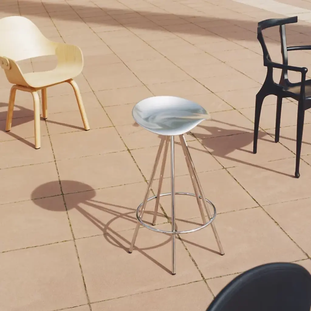 The Jamaica Swivel Stool from BD Barcelona brings an ultra-modern aesthetic to your living space. It was designed by Pepe Cortes. This stool boasts swivel capabilities that allow you to rest in a comfortable position. The seat is perched neatly at a focal point formed by the steel framework. This framework is connected by a central ring formation that keeps the stool balanced. An innovative rotation system facilitates optimal performance.