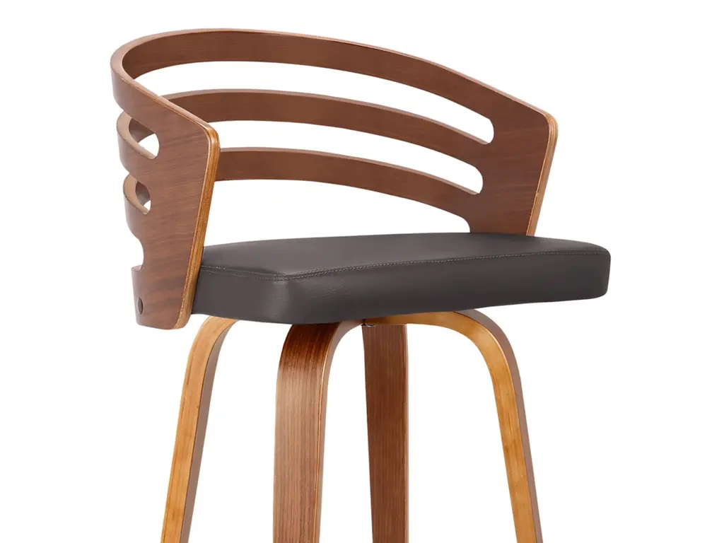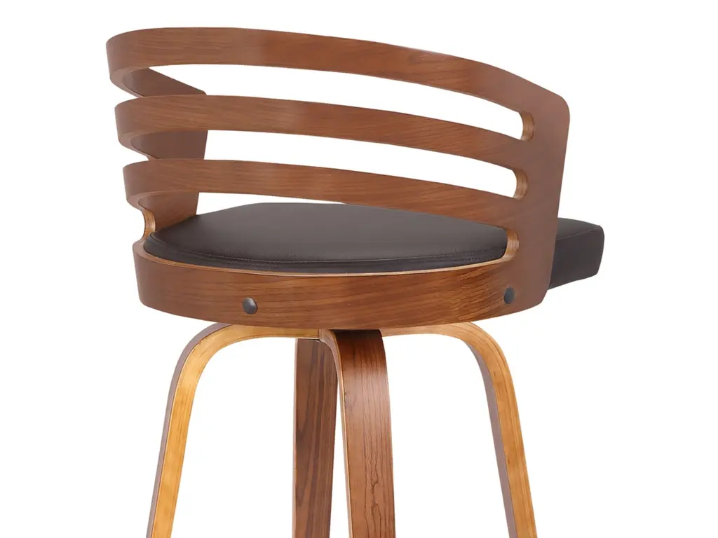 The Armen Living Jayden mid-century barstool is the perfect addition to any contemporary household. Though ideal for the kitchen or bar, the Jayden's stylish walnut wood frame and faux leather upholstered seat make it versatile for just about any room of the house. While appearing stationary, the Jayden features a 360 degree swivel feature for maximum mobility. The Jayden is available in 26 inch counter and 30 inch bar height and is available in your choice of brown or grey faux leather.