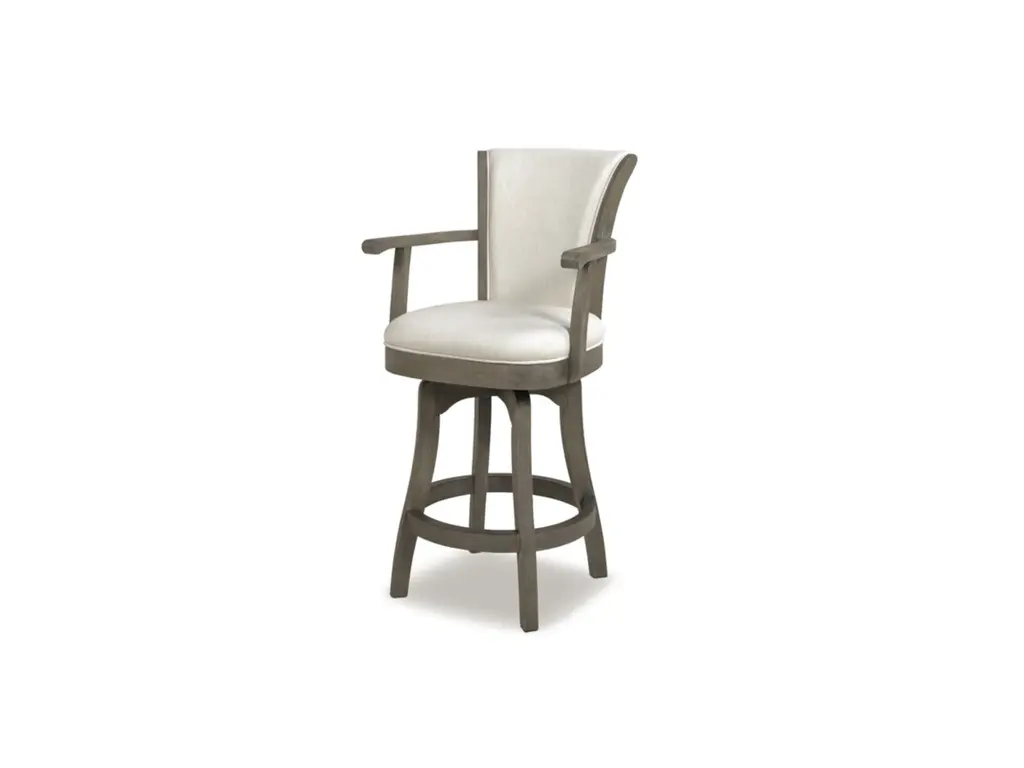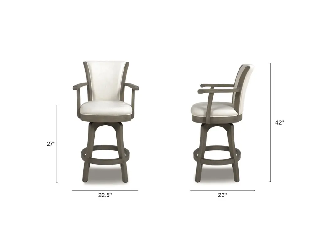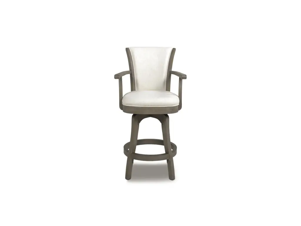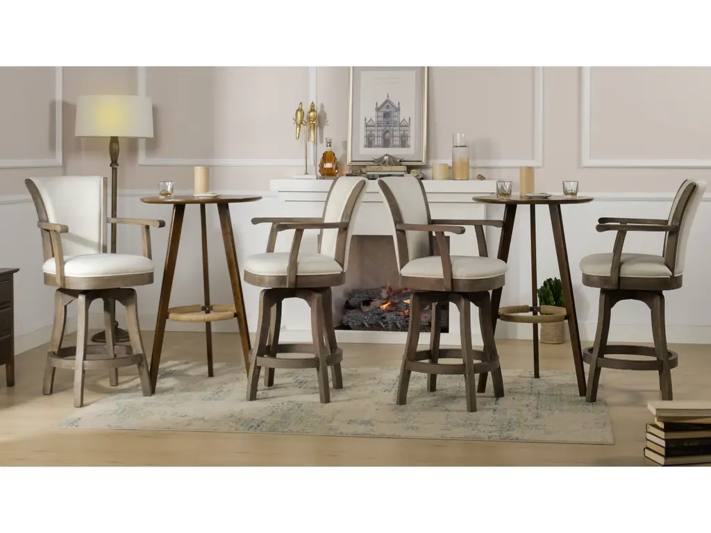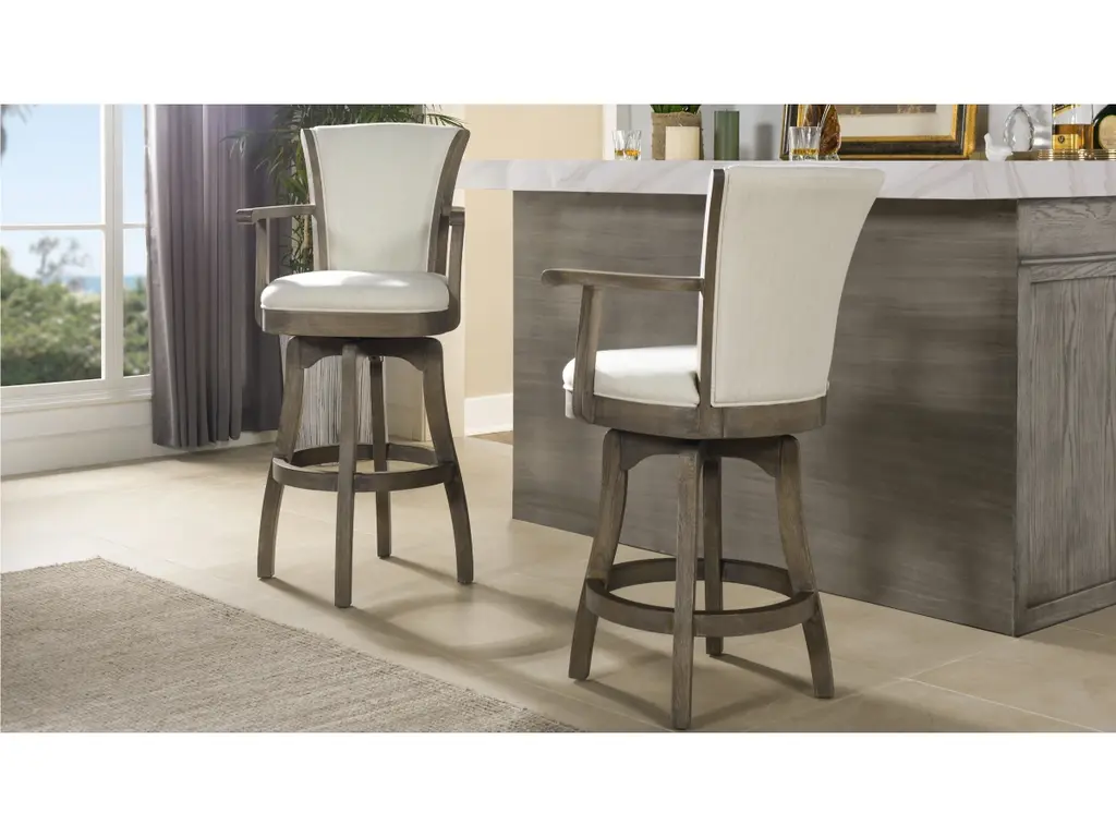 The Williams Swivel Bar Stool Collection by Jennifer Taylor Home puts a spin on that classic bar stool flair. Featuring a convenient 360-degree swivel seat complete with a plush upholstered backrest and wooden armrests, these oak bar stools capture that natural farmhouse vintage chic with a textured wood frame in a rich dark stain. Available in 30" bar and 27" counter seat heights, the Williams lets you wine and dine in comfort whether it’s at your in-home pub table or kitchen counter. A brass kickplate is included on the ringed footrest to preserve and protect the style of your stool.