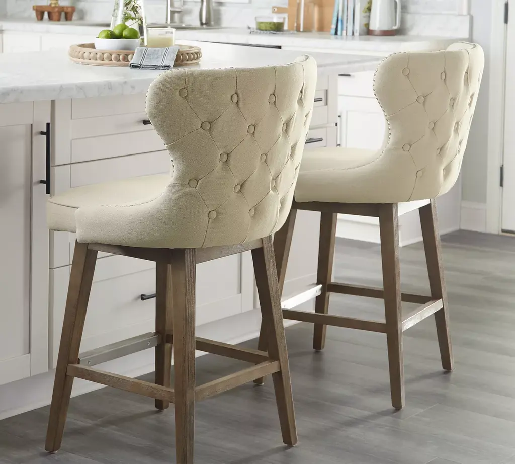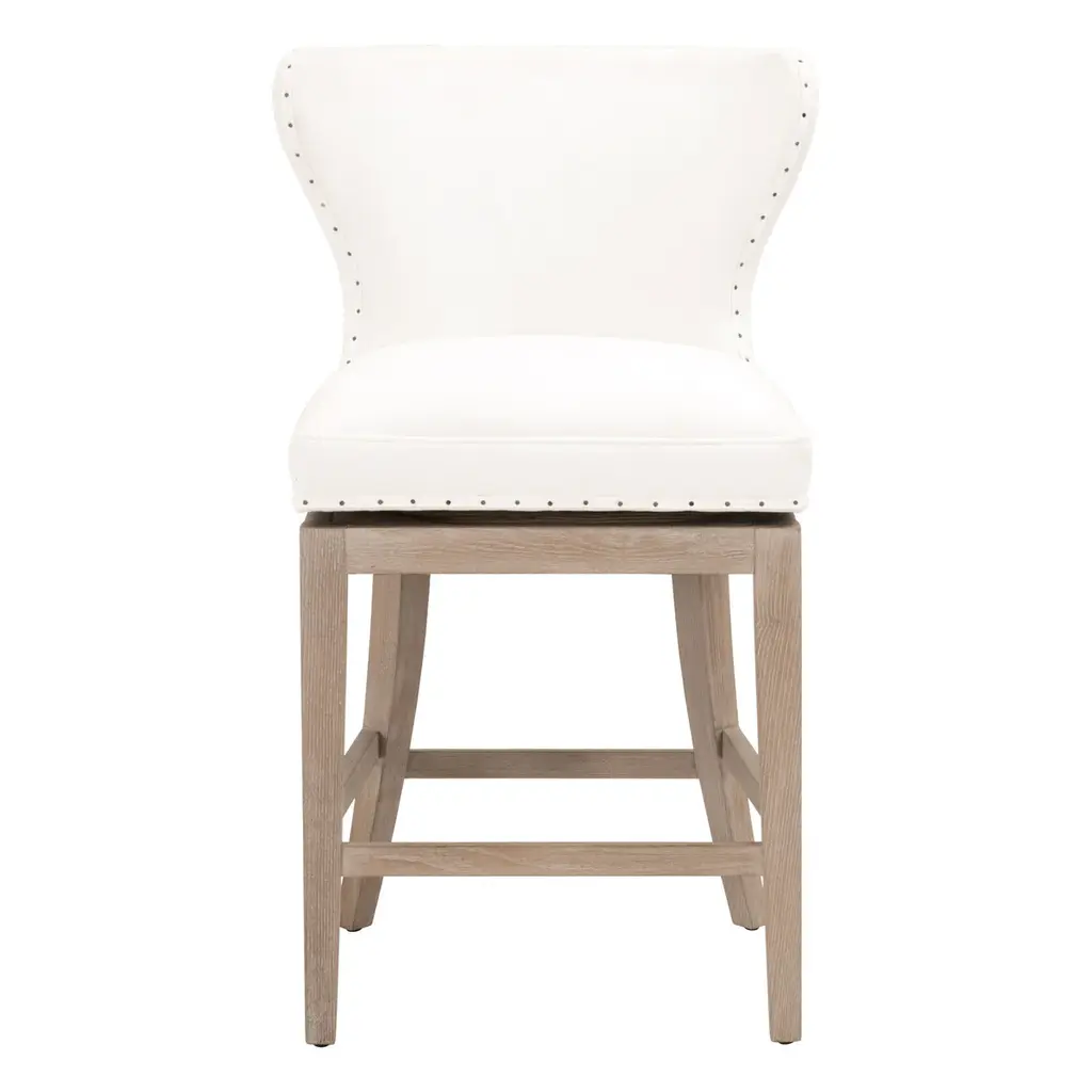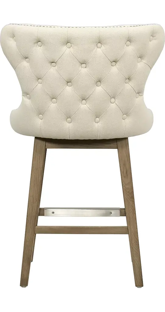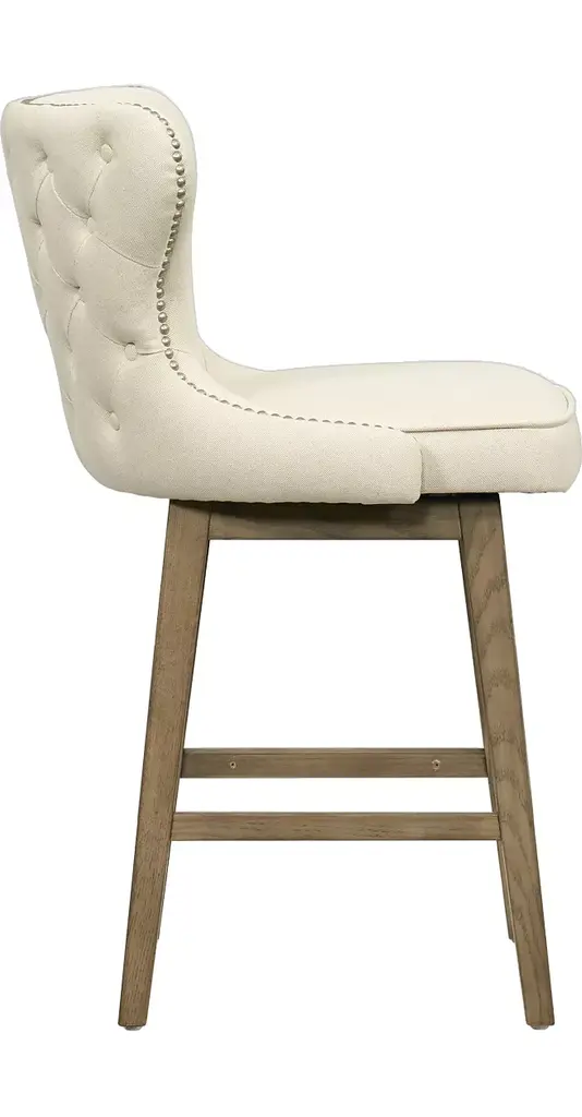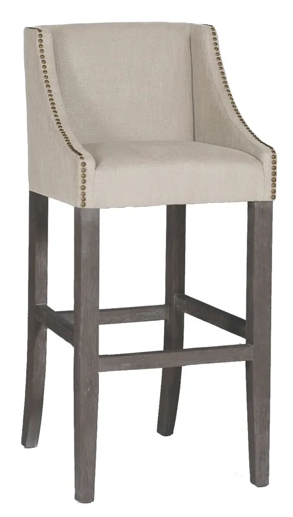 Take your seating to new heights with our stylish Jovie counter-height stool. The antiqued, hand-painted, driftwood finish is complemented by beige, cotton-blend upholstery. Finished with silver nailhead trim, this counter-height piece features a 180-degree swivel for easy versatility and a metal footrest for long-lasting comfort.