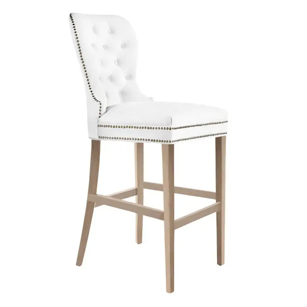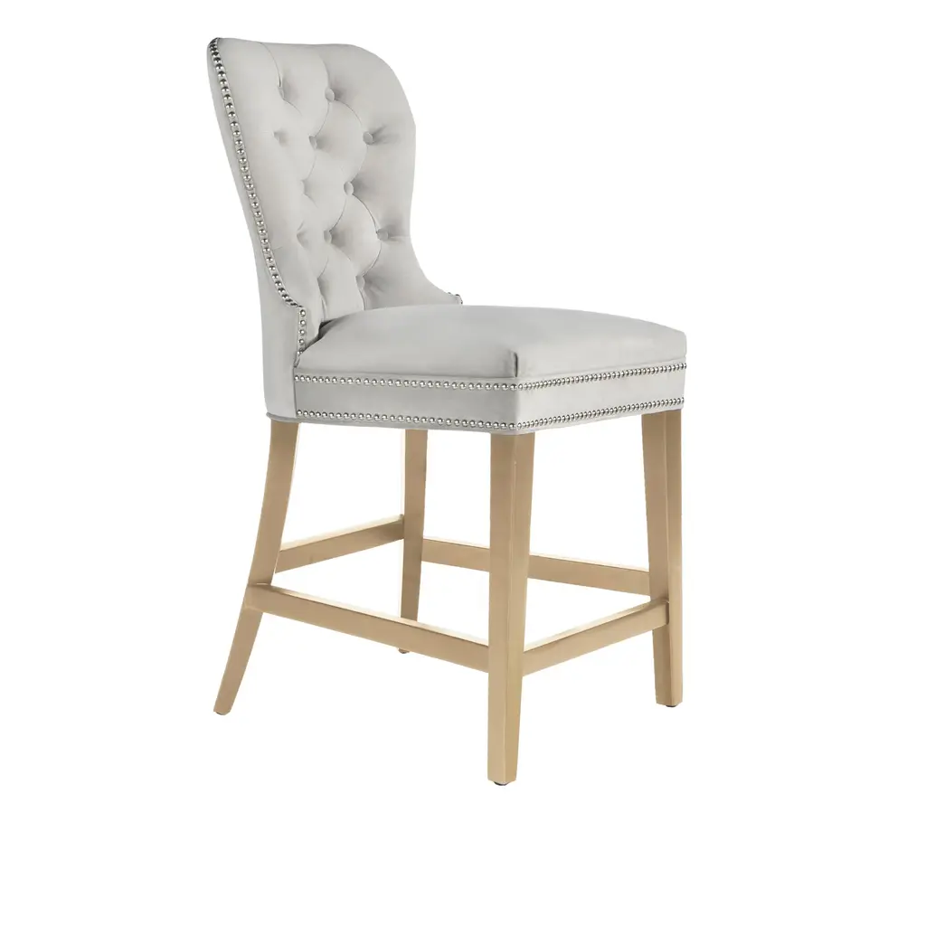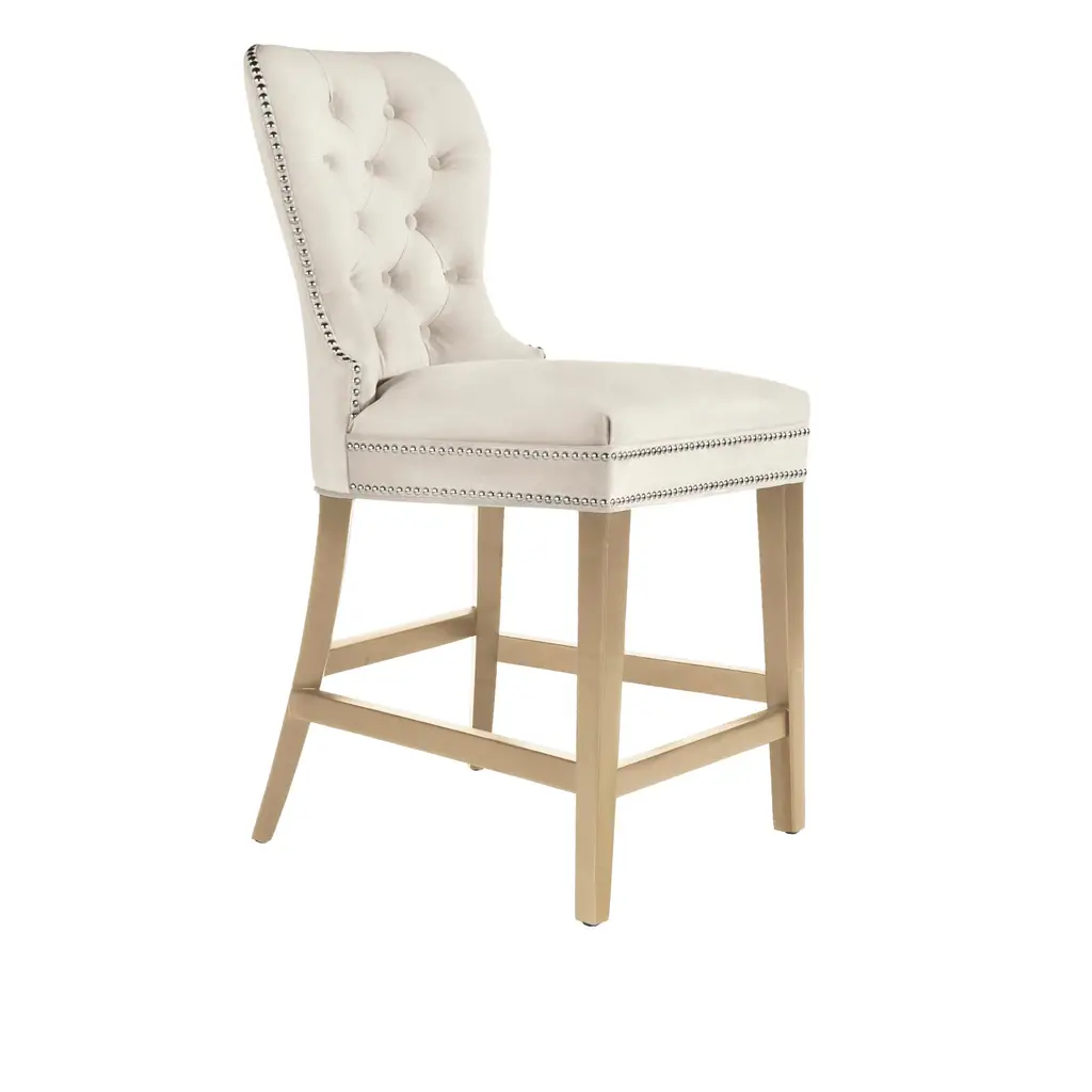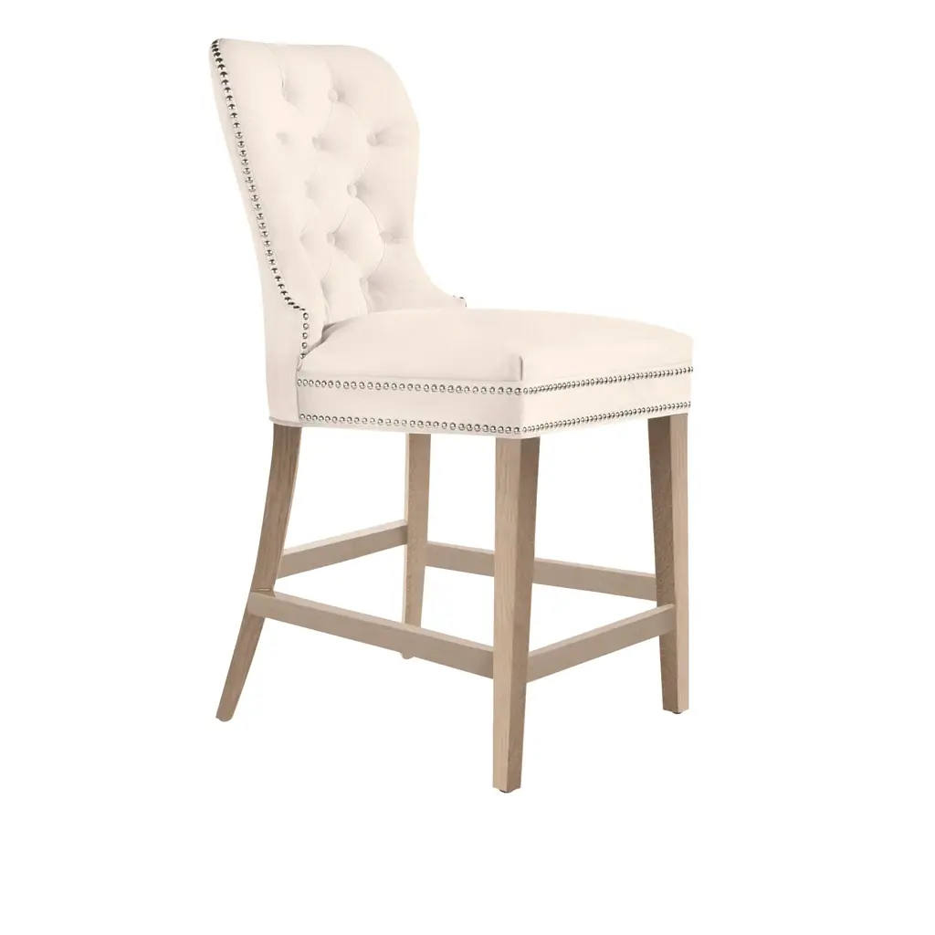 Take your seating to new heights with our stylish Jovie counter-height stool. The antiqued, hand-painted, driftwood finish is complemented by beige, cotton-blend upholstery. Finished with silver nailhead trim, this counter-height piece features a 180-degree swivel for easy versatility and a metal footrest for long-lasting comfort.
