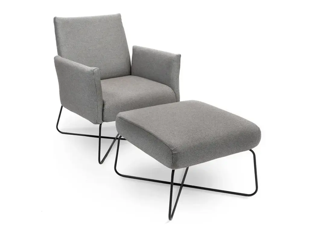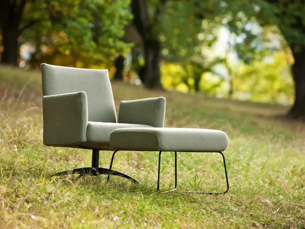 Kalos is a square fabric garden footstool.Upholstered outdoor furniture is trendy, thanks to weather- and dirt-resistant fabrics that are also lightfast. The KALOS armchair convinces in many respects. Excellent seating comfort that invites you to relax. Suitable for a lounge or as a solitaire - Kalos always cuts a fine figure. An ideal complement to the lounge chair there is a comfortable stool. This provides an optimum of comfort. The unique swivel base with which rotations of up to 360° are possible ensures an all-round view.The KALOS dining chair and armchair are softly upholstered and individually manufactured in Germany. There is a choice of chair, as well as 2 versions with armrests, either stackable with armrest support or with upholstered armrest parts. The selection of more than 50 fabrics leaves no design wish unfulfilled.New in the outdoor range is the special upholstered construction in the seat. Thanks to flexible bands and high-quality furniture foam, a selectively soft yet firm seating comfort is achieved. The back sections also offer soft pillow-like comfort thanks to the special upholstery. The weather-resistant outdoor fabrics can be left outdoors with peace of mind. A variety of different designs can be chosen.