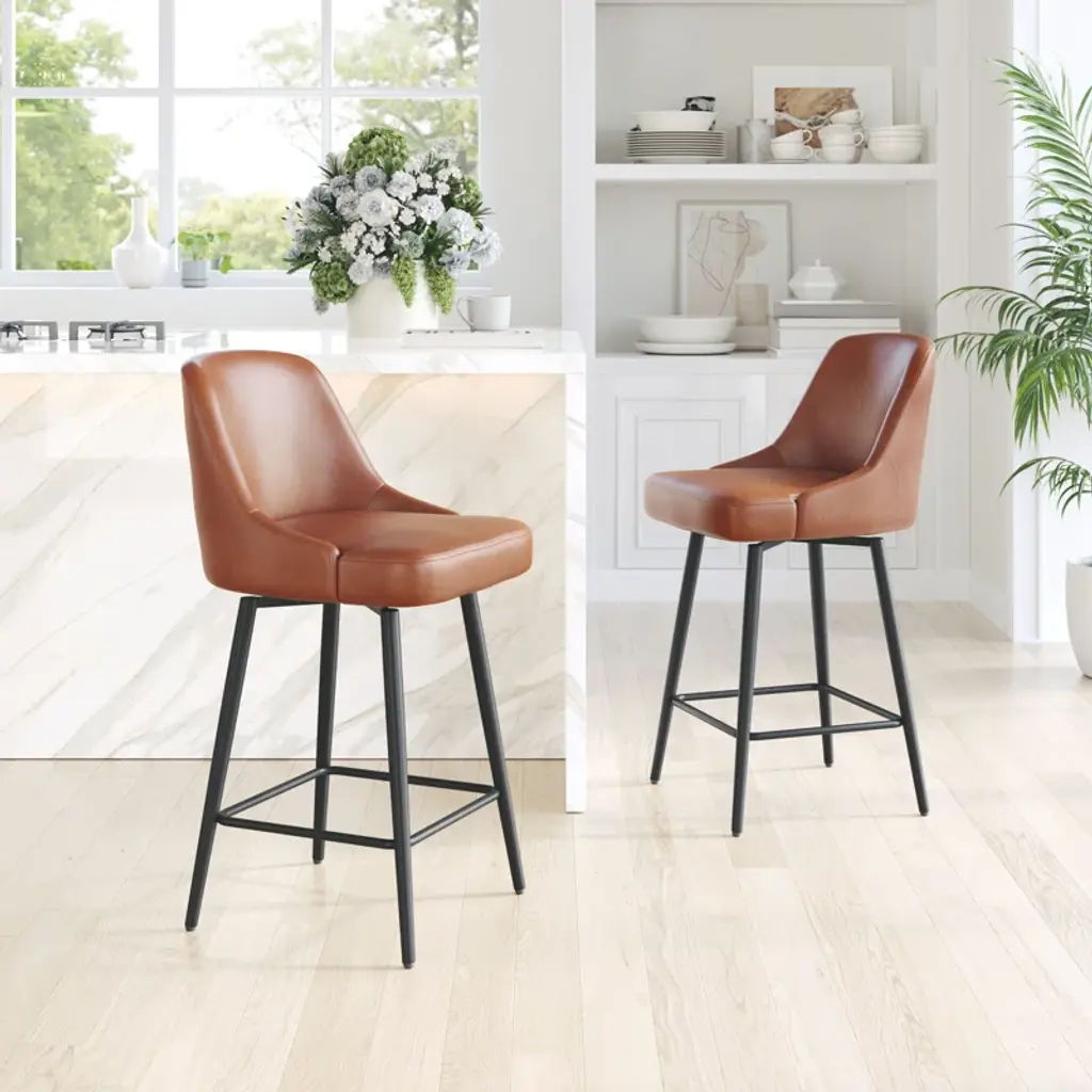 Introducing the Keppel Swivel Counter Stool, a perfect blend of versatility and modern design. Ideal for kitchens and workspaces, this stool features a sleek silhouette and functional swivel seating, making it a stylish addition to any environment. Constructed from high-quality vinyl and a sturdy powder-coated steel frame, the Keppel combines durability with elegance. Its glam and Art Deco-inspired design elevate your decor, providing both comfort and sophistication. Whether you're enjoying a casual breakfast or entertaining guests, this counter stool effortlessly enhances your space with its chic aesthetic and functional features.