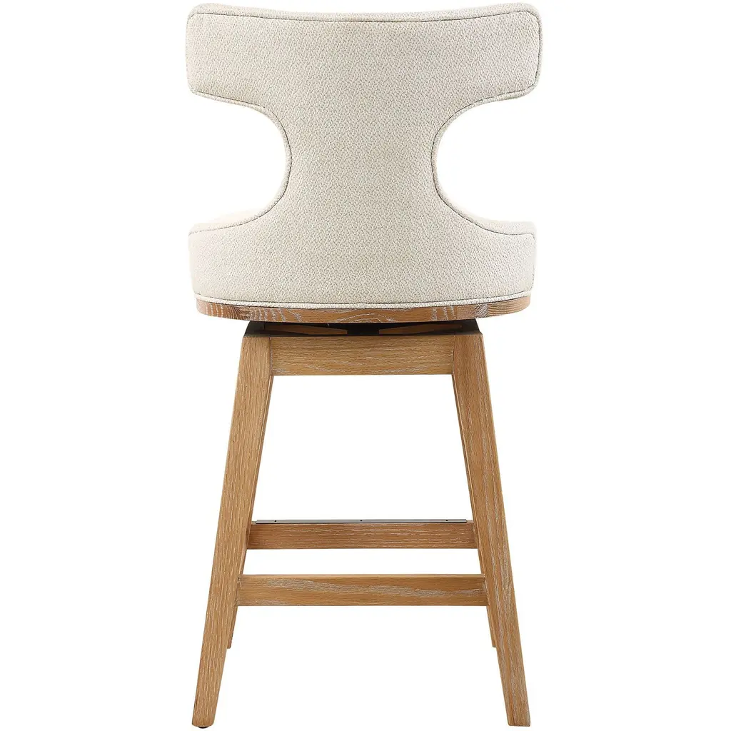 Klismos 38.25 Inch Textured Off-White Fabric And Natural Oak Counter Stool