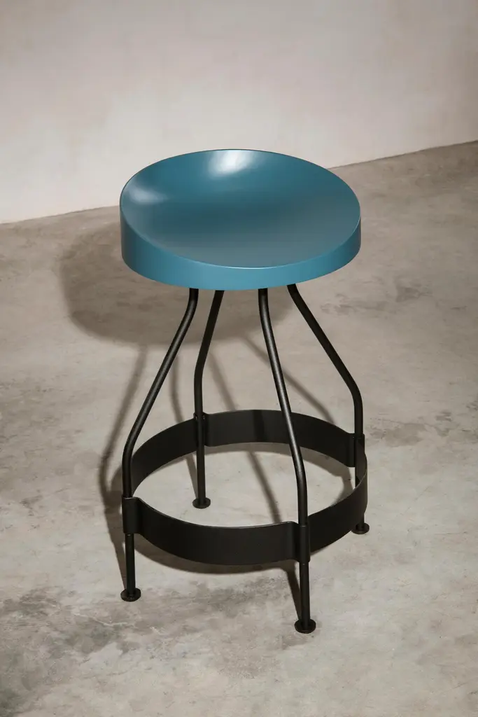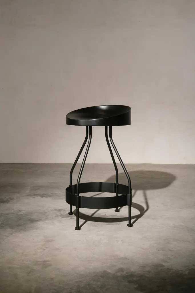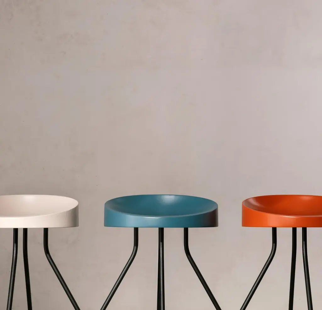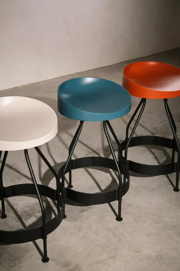 In door or outdoor. Swivel or not.Olindias is a bar stool able to easily adapt to a variety of environments.With a bold design that recalls the shape of a jellyfish, characterised by curved lines and a contemporary elegance, Olindias renews the archetype of the bar stool adding a strong personality to a classic piece. A minimalist structure composed by tubular legs in metal converges to the top to support the seat. Dimensions:L 48,2cm x 48,2cm x H 73,1cmMaterials: metal, polyurethaneColours: Glossy black, glossy coral, glossy duck blue, glossy warm grey.