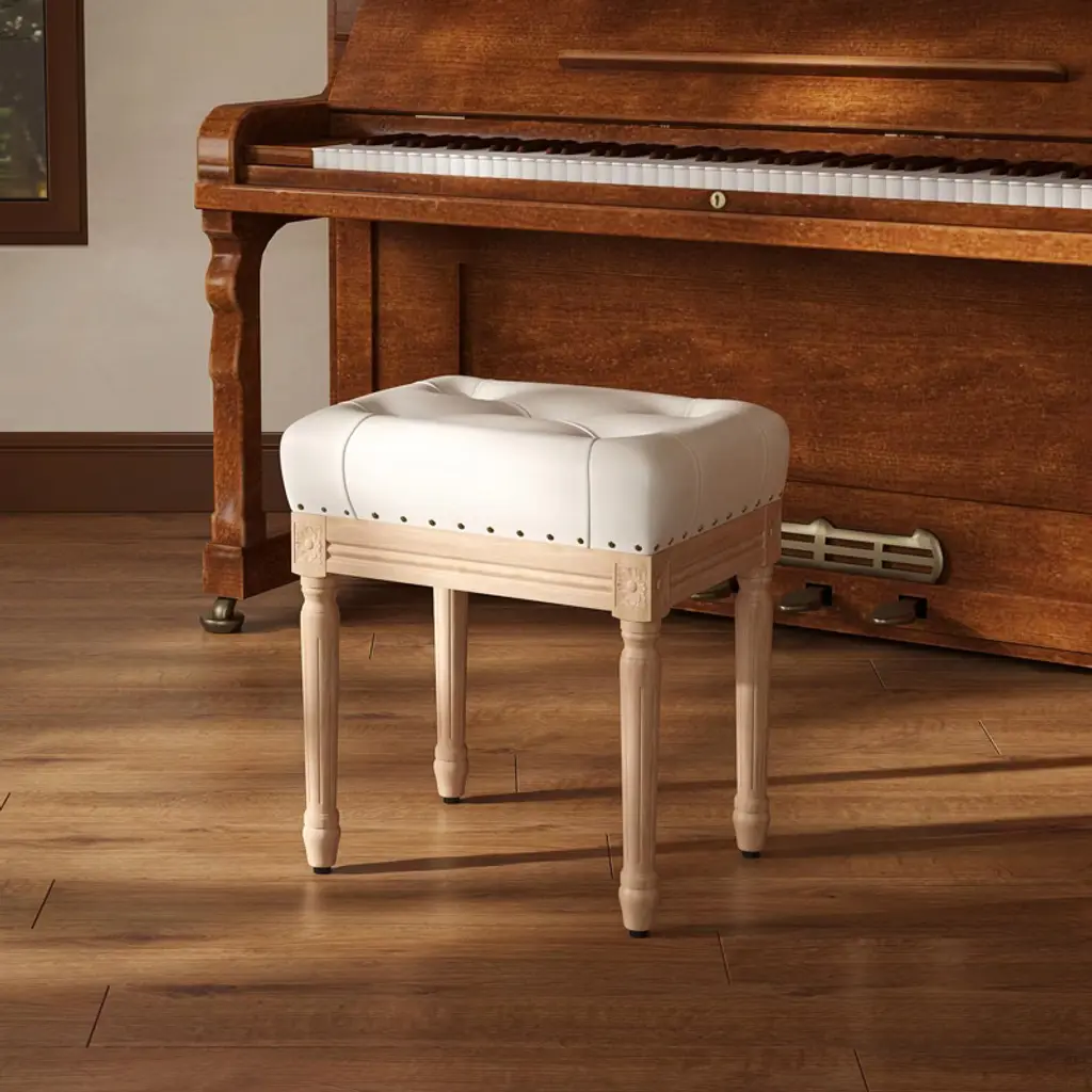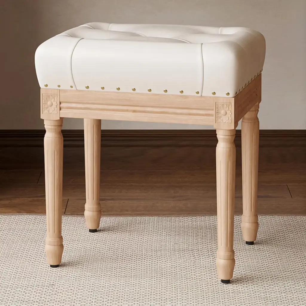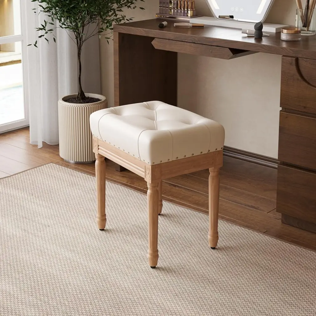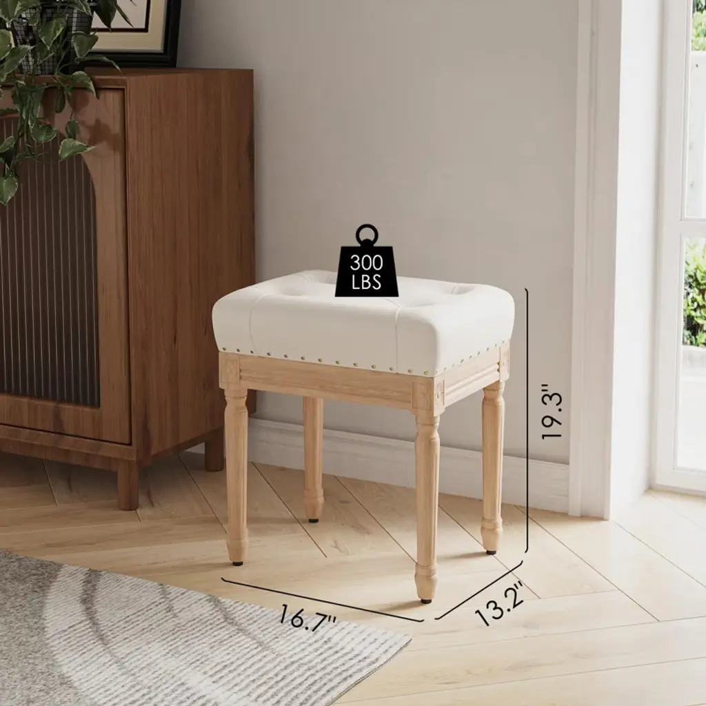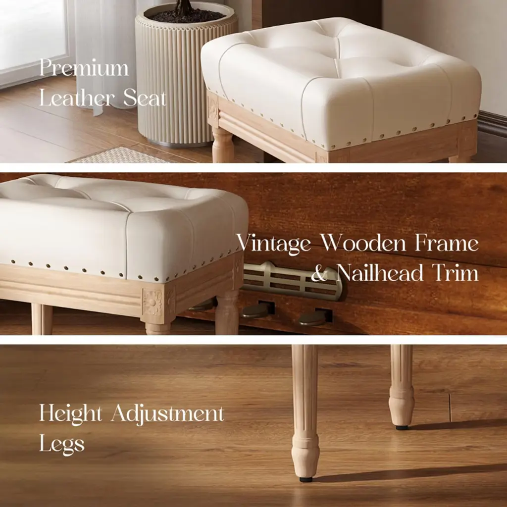 Lirago,white Leather Vanity Stool With Velvet Ottoman Footrest For Bedroom & Living Room