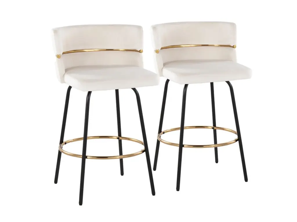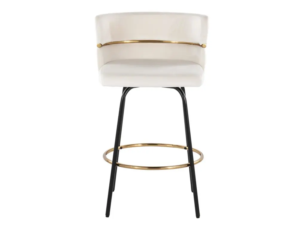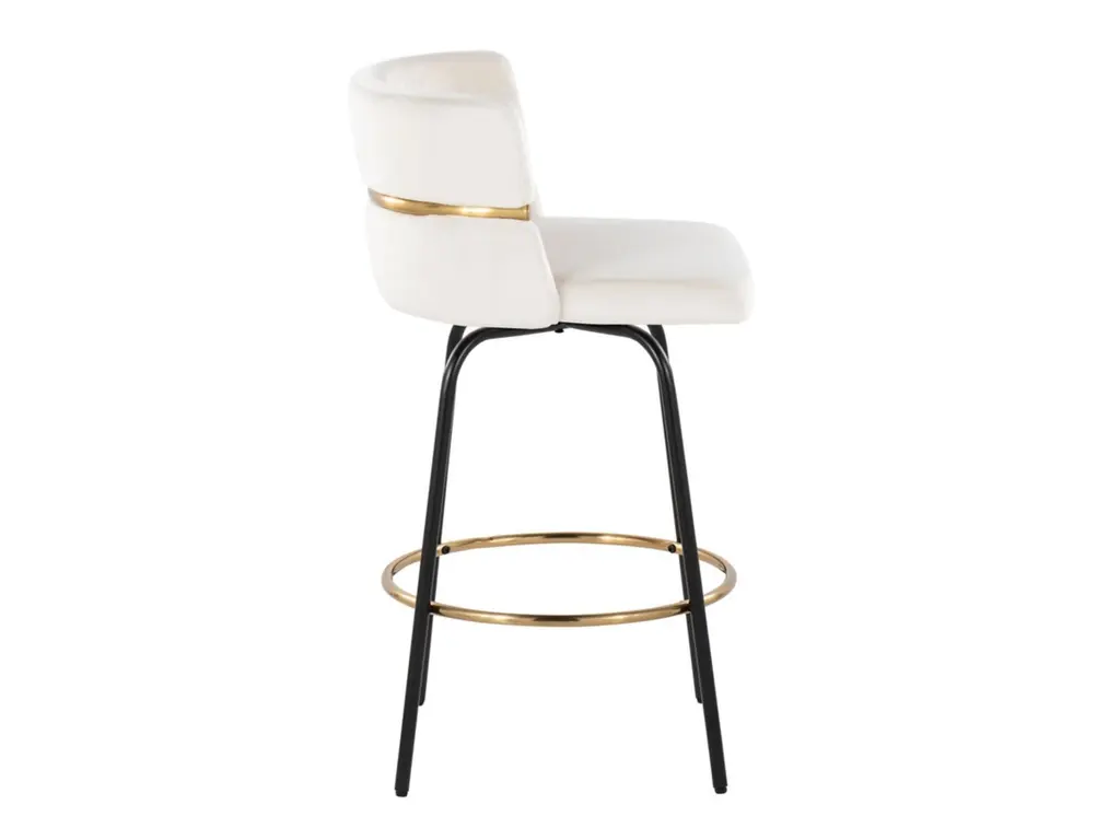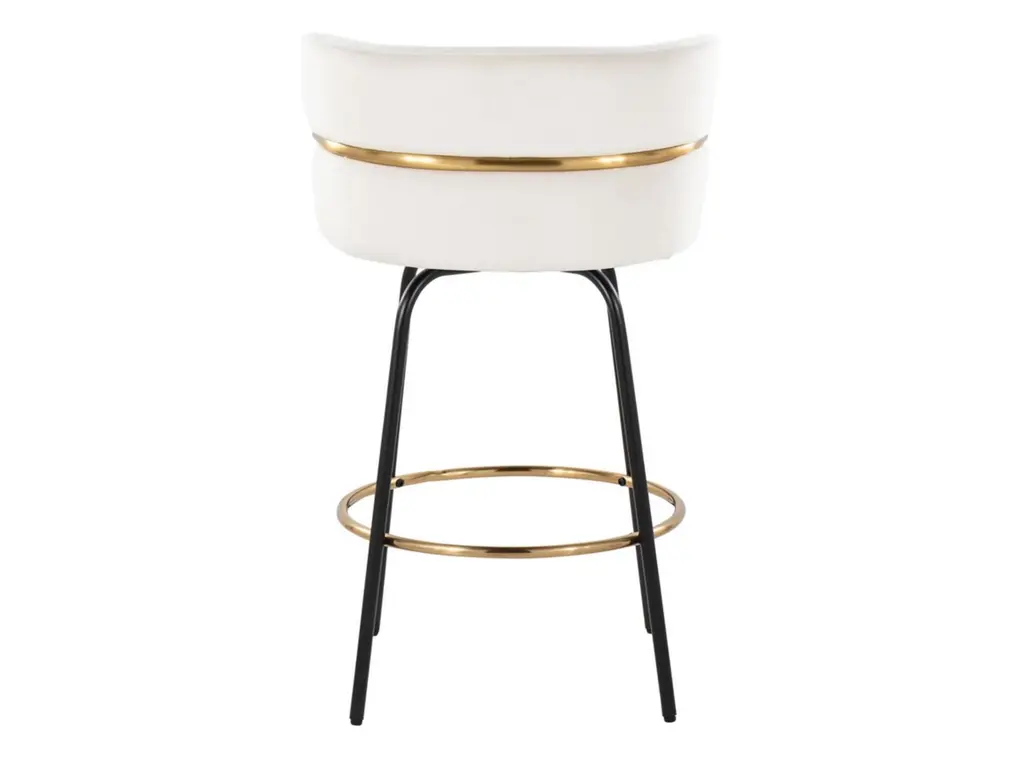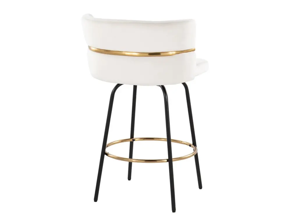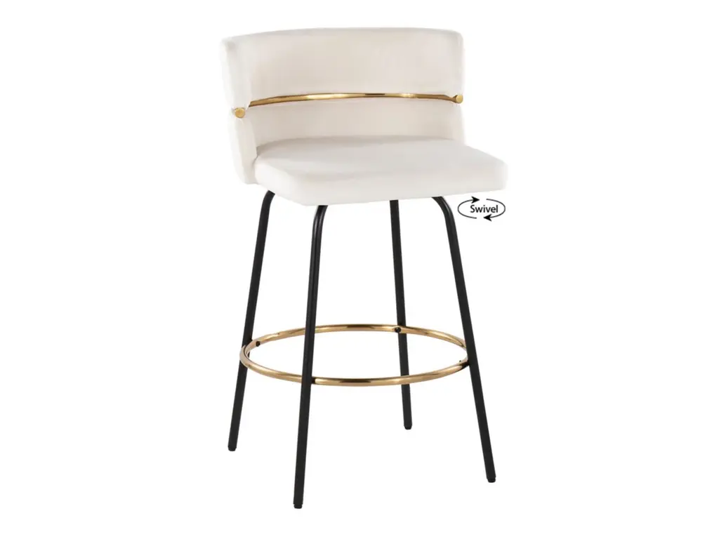 Chic modern style shines bright with the unique design of the Cinch Claire Fixed-Height Counter Stool by LumiSource. Featuring a metal accent bar design and padded upholstered seat that swivels, the Cinch Claire Counter Stool provides both a stylish and practical design. Available in various color options, choose the one that suits your space best.