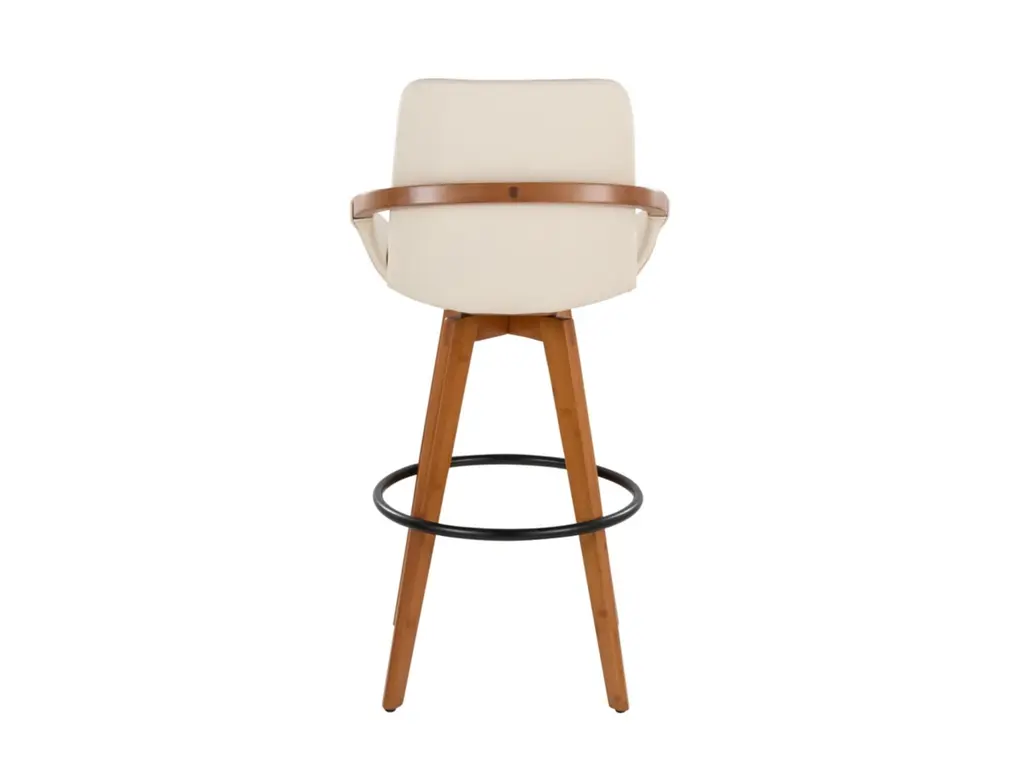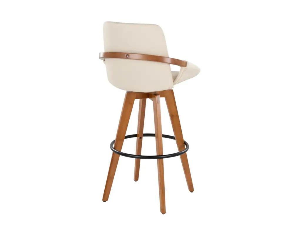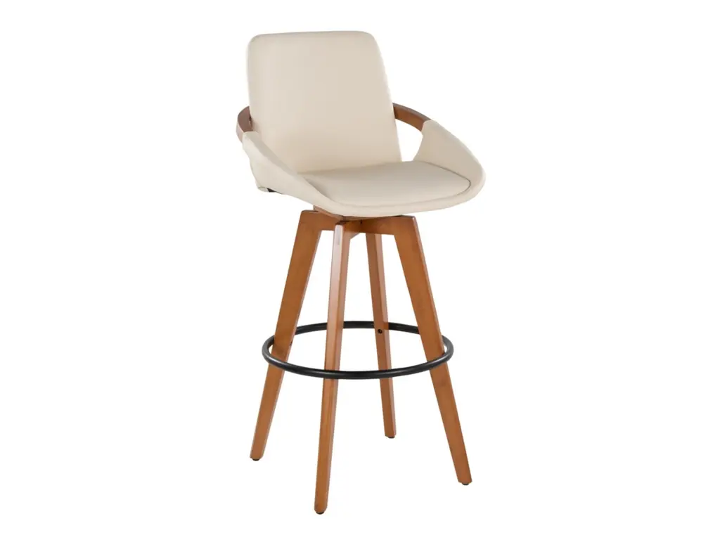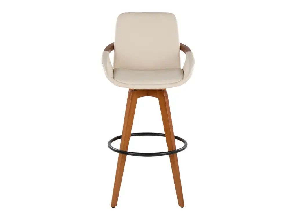 Mid-Century inspired, the Cosmo Fixed-Height Bar Stool by LumiSource combines style and comfort! A faux leather seat is accented by stylish walnut bamboo armrest and legs, with smooth swivel capability. Available in a variety of color combinations, choose the one that fits your space the best.