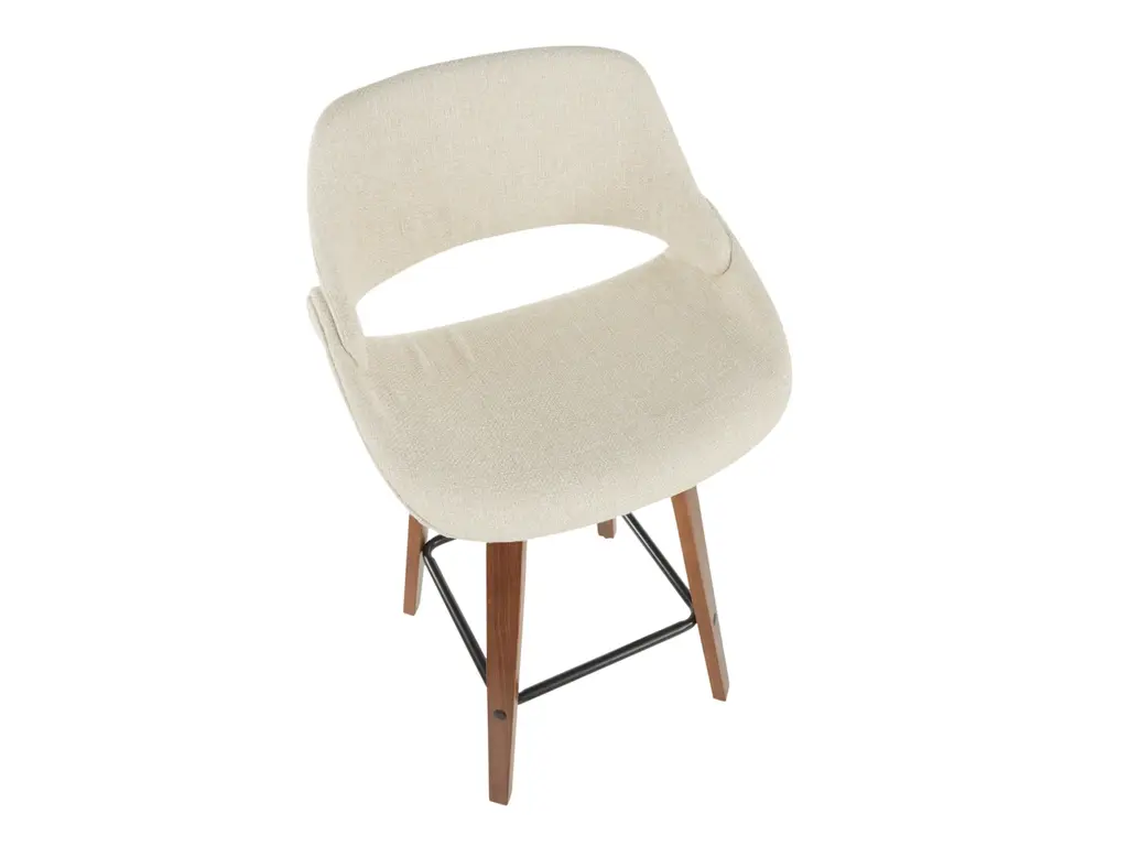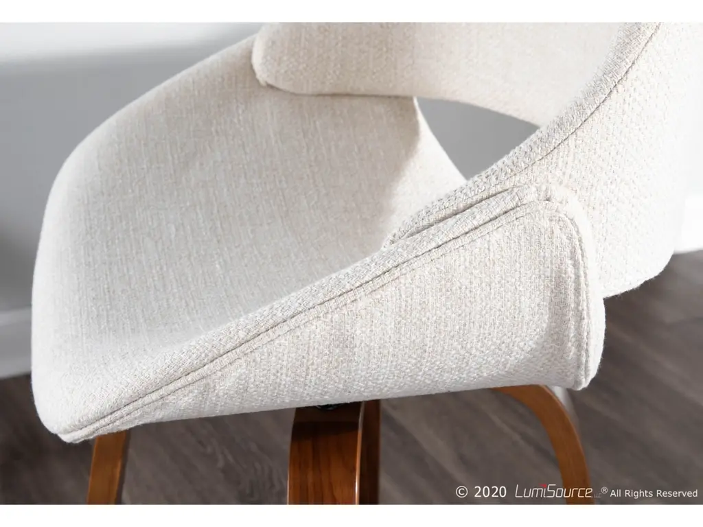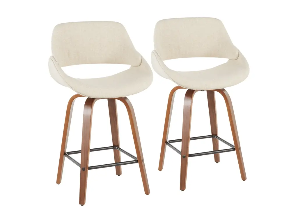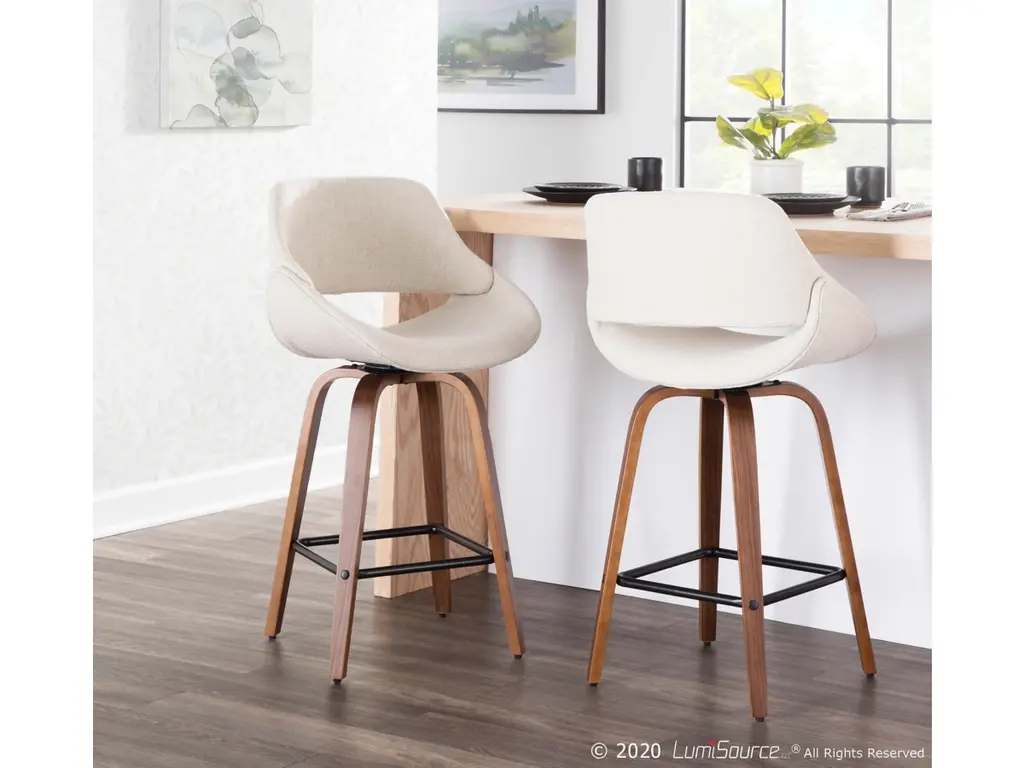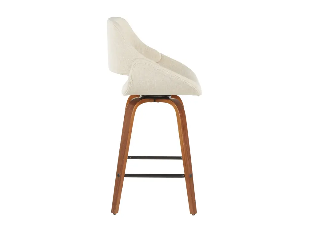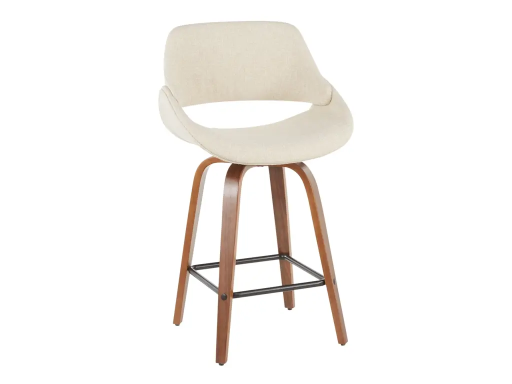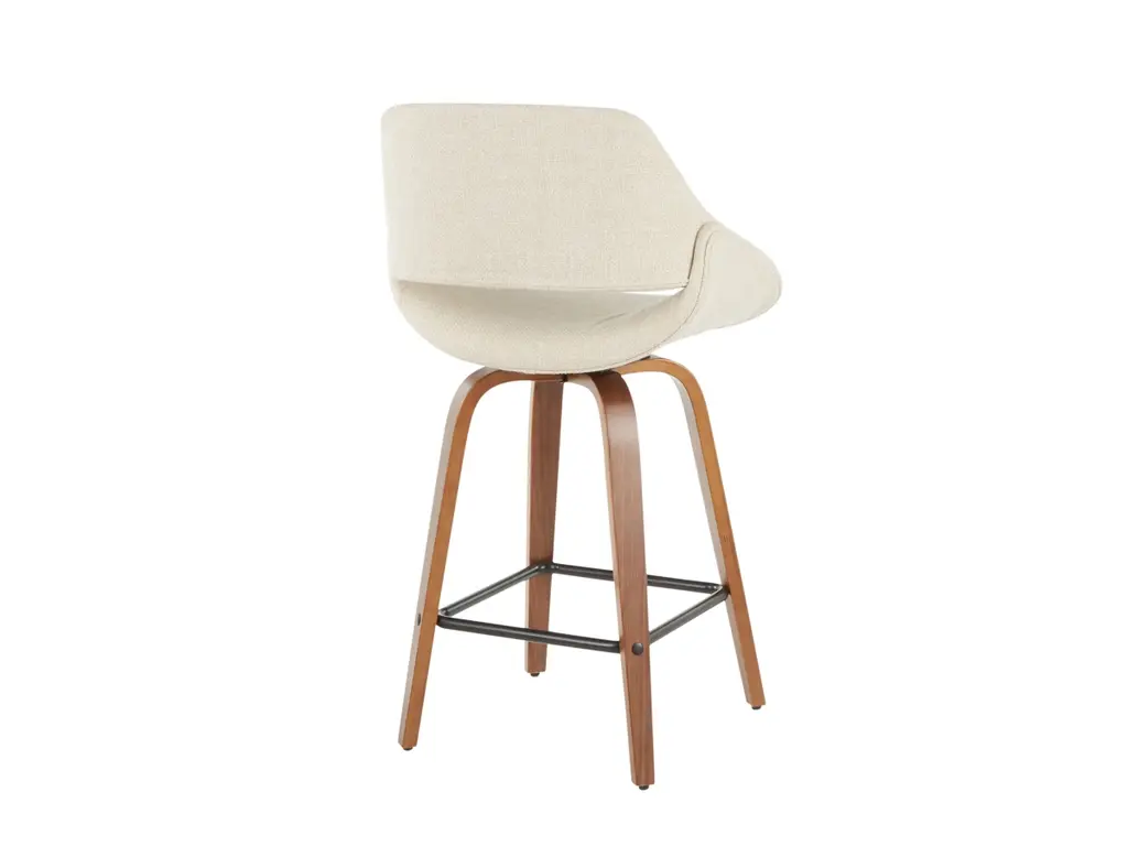 The wide and welcoming seat of the LumiSource Fabrico Counter Stool beckons one to sit and relax. A curved back and contoured upholstered seat is accented by flared walnut wood swivel legs that add to the stylish yet comfortable design. Available in a variety of upholstery colors, choose the one that suits your space best.