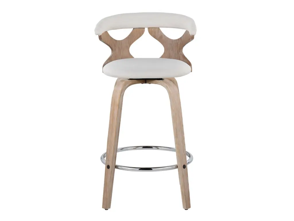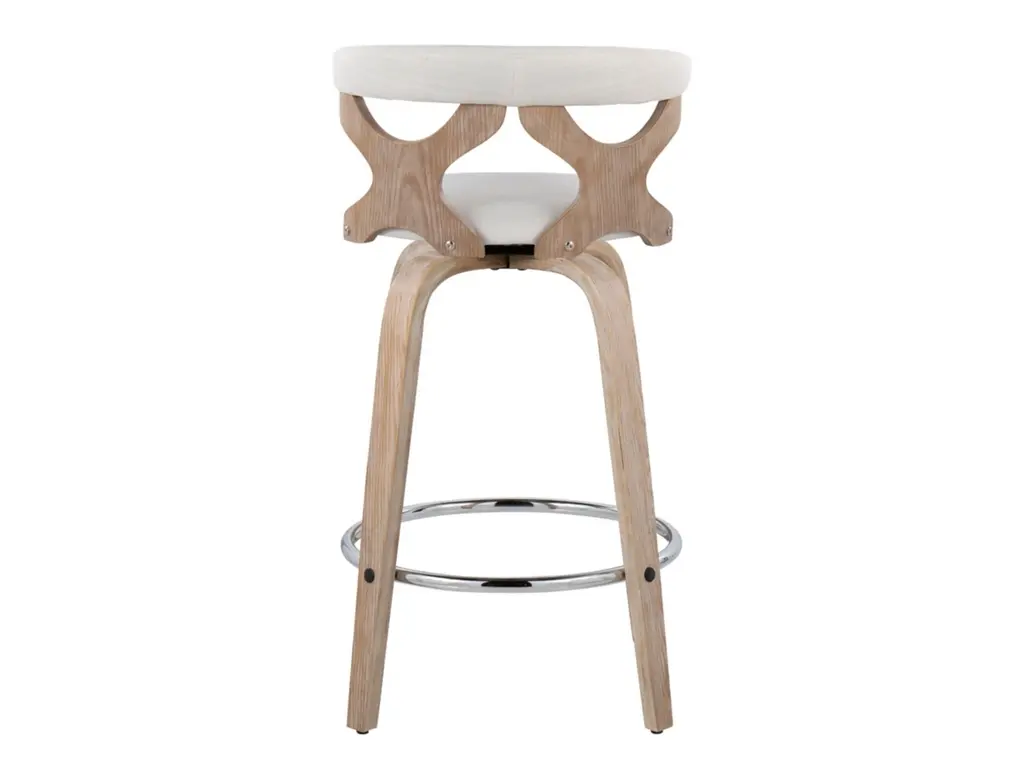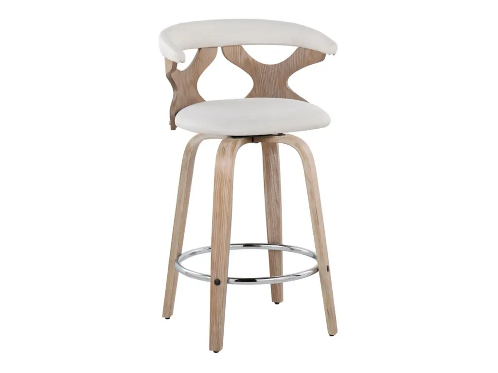 The unique cut-out design that forms the back of the Gardenia Fixed-Height Counter Stool by LumiSource adds considerable visual interest to this exciting option for counter height seating. The rounded back and padded upholstery adds comfort while the full motion swivel lends a functional and practical feature. The Gardenia Stool comes in a variety of color options and bases to choose from.