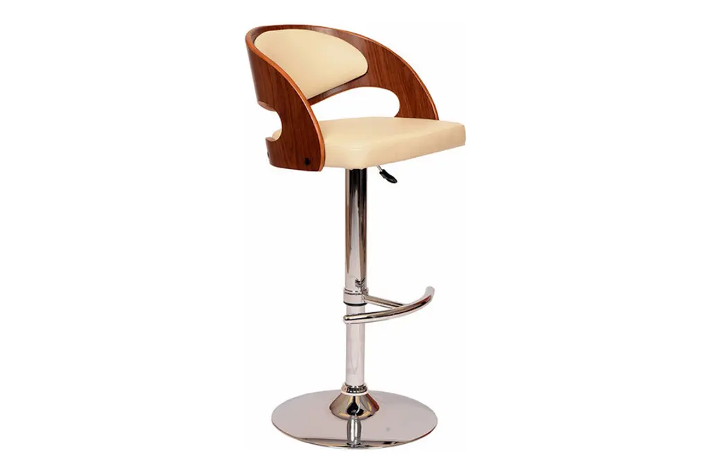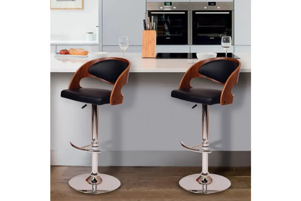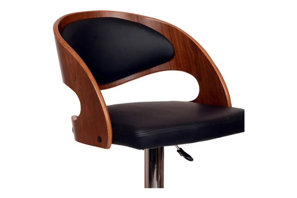 Searching for a stylish and chic looking bar stool? Then you want to consider the Armen Living Malibu Swivel Bar Stool. This bar stool has a unique silhouette that can work in a modern or eclectic area. The seat is made from a leatherette upholstery in a variety of colors and the base is made from shining chrome. The chair has a walnut veneer back and a footrest that increases your comfort level. With an adjustable height and a swivel motion, this chair is comfortable and a great addition to your space.