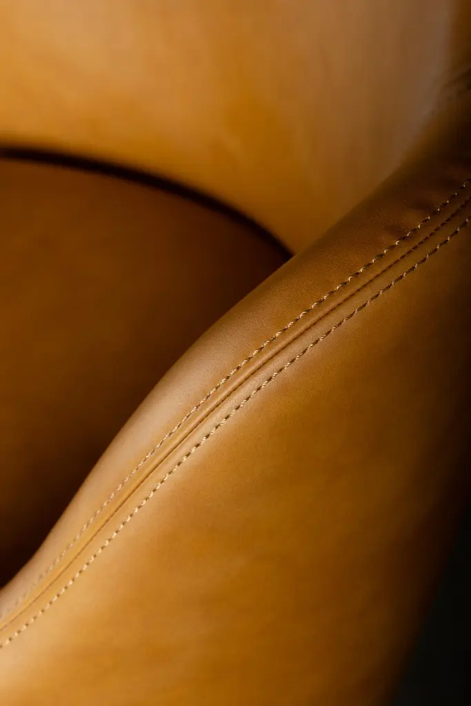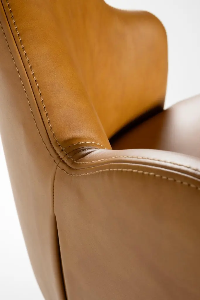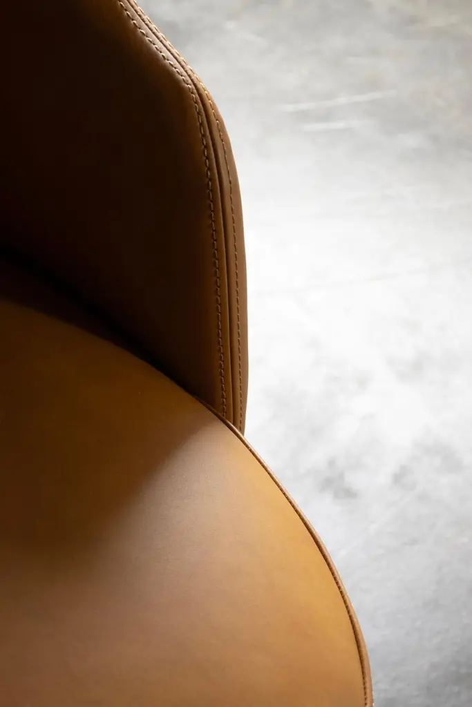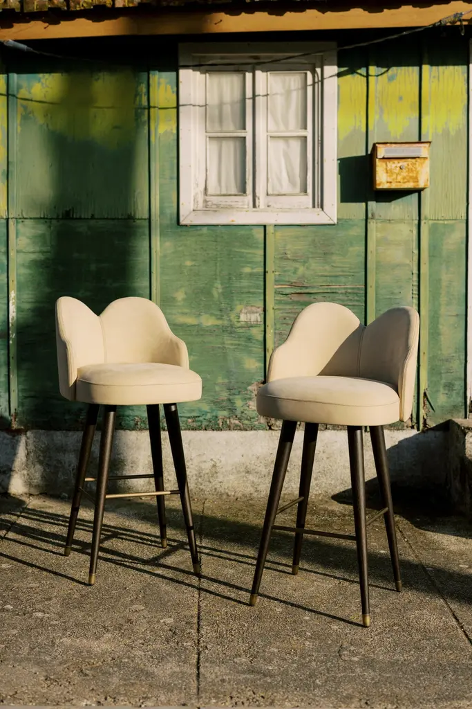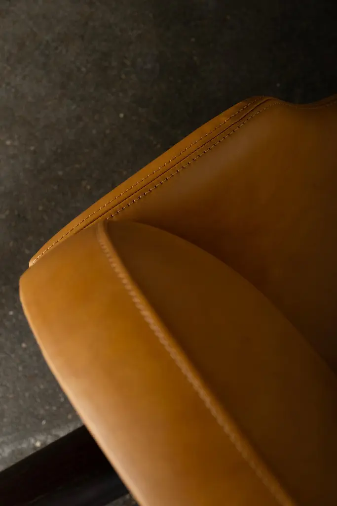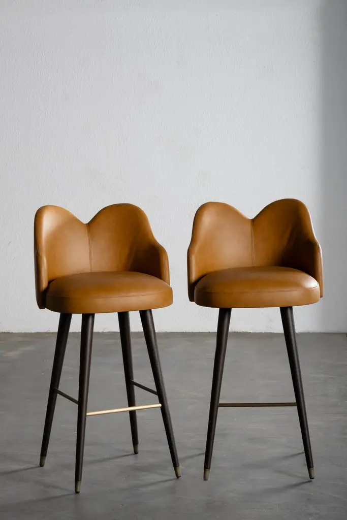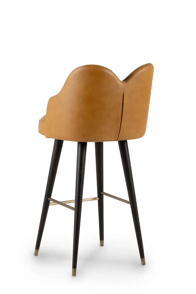 Mary Swivel Bar Stool, Contemporary Collection, Handcrafted in Portugal - Europe by Greenapple.The Mary leather bar stool transcends the ordinary with its modern design and exquisite craftsmanship. Defined by clean lines and upholstered in luxurious Italian leather, it offers a seductive appearance and an inviting feel. The stiletto legs accentuate its unique form, making Mary a sophisticated leather dining bar stool that seamlessly complements contemporary dining spaces.The Mary bar chair features a seat upholstered in caramel leather. Its anti-fungal and vermin free solid American oak legs are stained in dark brown with a matte varnish and footrests and end caps in brushed and burnished antique brass with a matte varnish, ensuring durability and functionality.Seat and backrest structure, made from birch plywood, ensures strength and stability.Designed to withstand humid environments, it is also suitable for outdoor use when customized with weather-resistant fabric.The Mary Bar Stool can be customized in terms of dimensions, materials and fabrics.Mary Bar Stool Material CodesWD026 American Oak, Stained Open-pore, Varnished, Dark Brown, MatteME032 Brass, Brushed, Burnished, Varnished, Antique-Brass, MatteM103422 Leather, CaramelHandcrafted in Portugal - Europe by GreenappleUnique by design, Crafted by peopleGreenapple transforms contemporary spaces into exclusive narratives of design and craftsmanship. From custom-made furniture to bespoke interiors, each creation is a timeless work of art, shaped by master artisans who honor centuries-old techniques.Founded in 2005 by Sérgio Rebola and Rute Martins, Greenapple has earned global recognition among high-end clientele and leading design firms. While Rute designs each unique piece, Sérgio ensures uncompromising quality from design to production and from production to your home. We provide a seamless experience, offering short production lead times, worldwide delivery within 7 to 10 days, and white-glove service upon request.For U.S. clients, we can handle all customs clearance, cover duties, and offer white-glove service as well upon request.Counter Stool, High Stool, Bar Seat