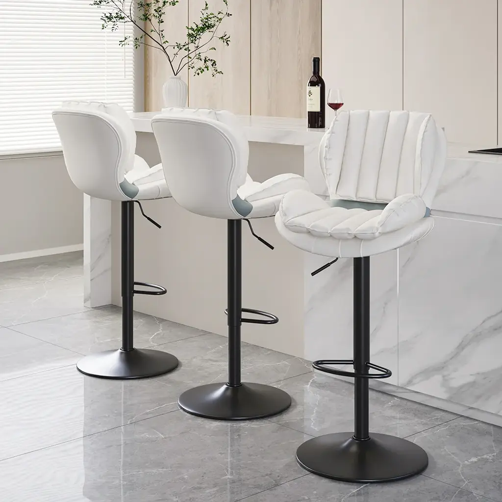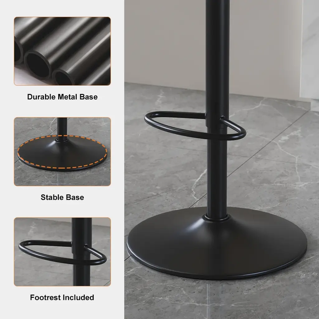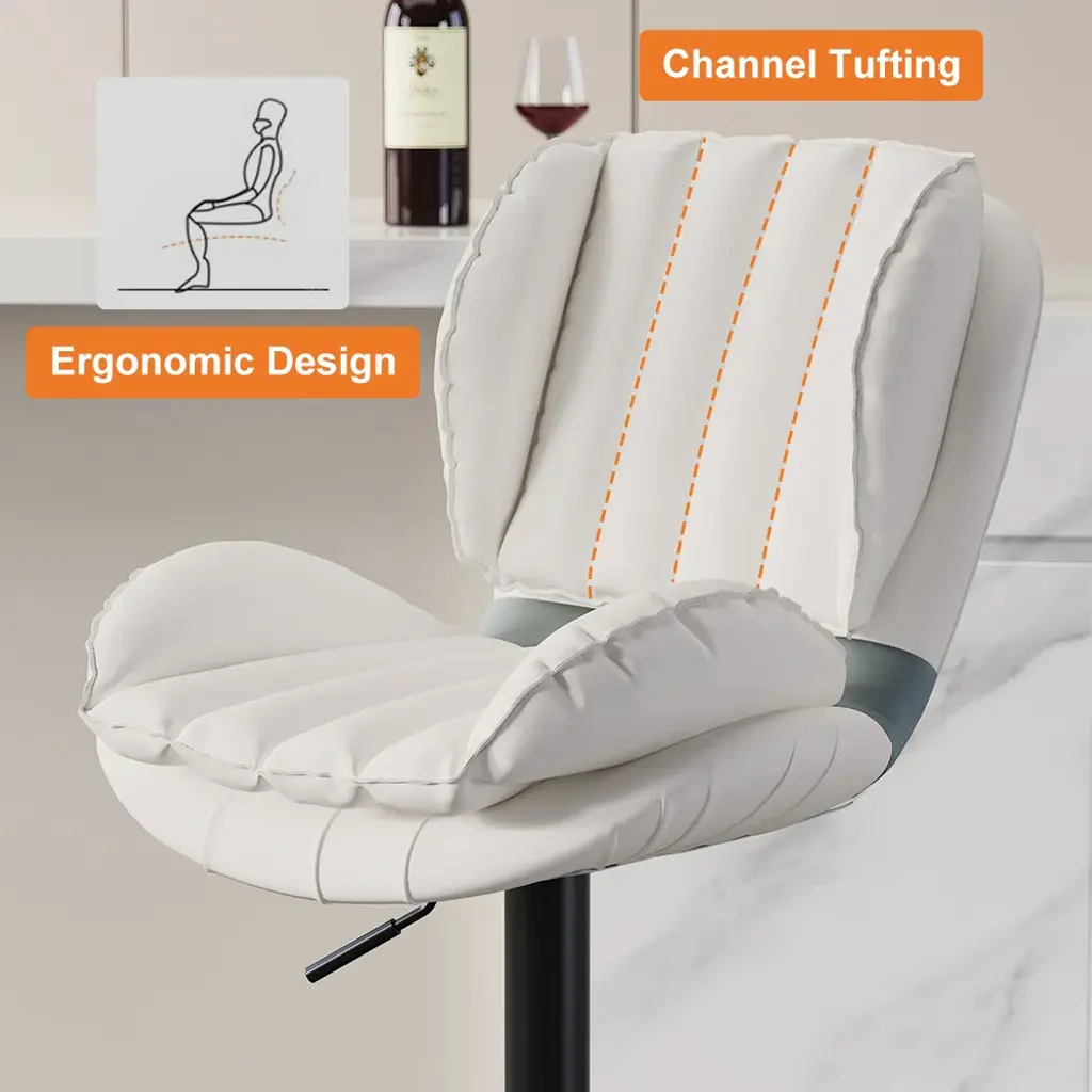 [Comfort] The soft PU leather upholstery will make you feel like you're sitting on a cloud. [Support] The backrest will support your spine and relieve pressure. [Luxury] This bar stool is the perfect addition to any home. [Ease of use] The adjustable height and swivel base make it easy to use.