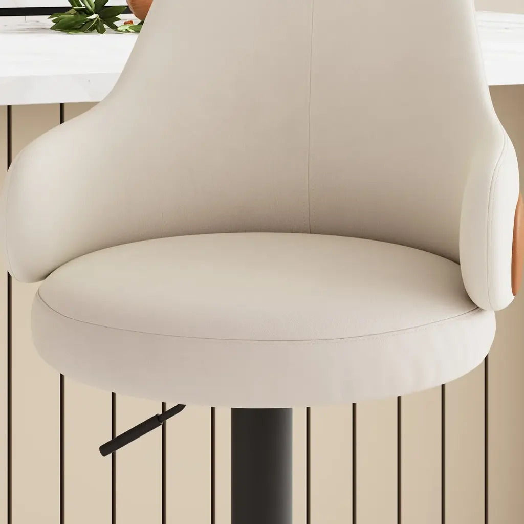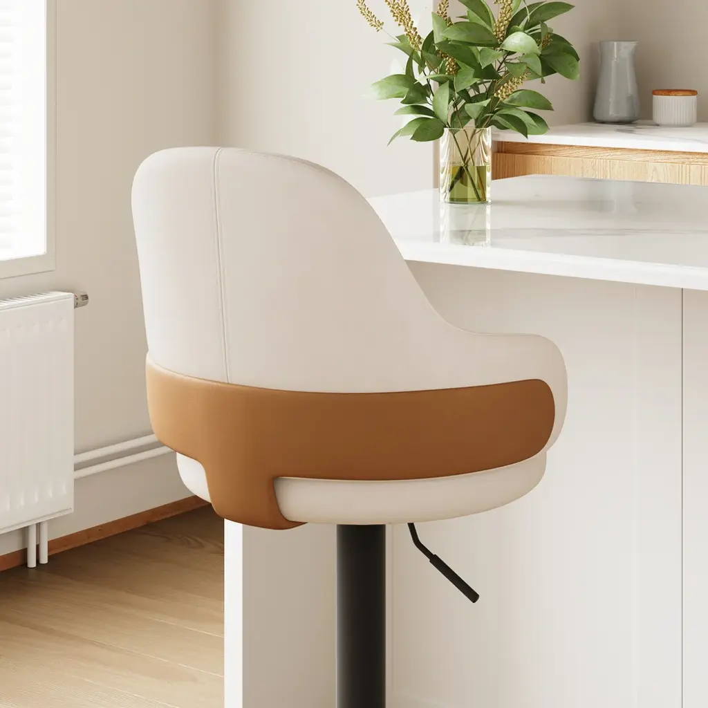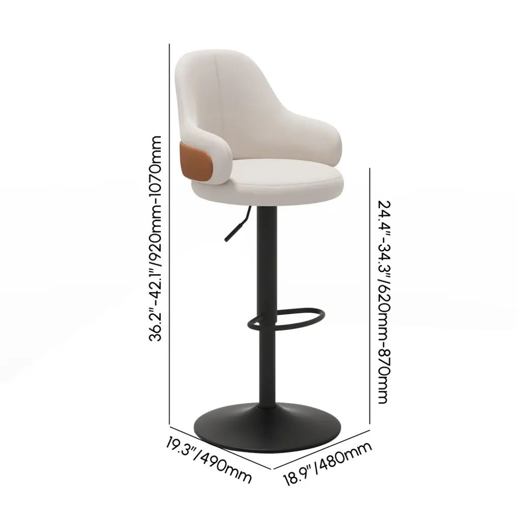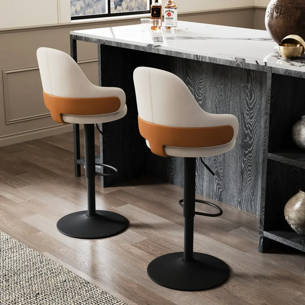 Bring modern glamour into your dining or kitchen area with this swivel bar stool. Luxuriously upholstered in white velvet, this particular stool boasts an arched back for ergonomic support and a round seat for comfort. Additionally, it has an adjustable height with a swivel function for versatility, while the gold metal legs provide strength and style. Perfect for your kitchen island or dining area, this stool merges functionality with a sleek, modern design.