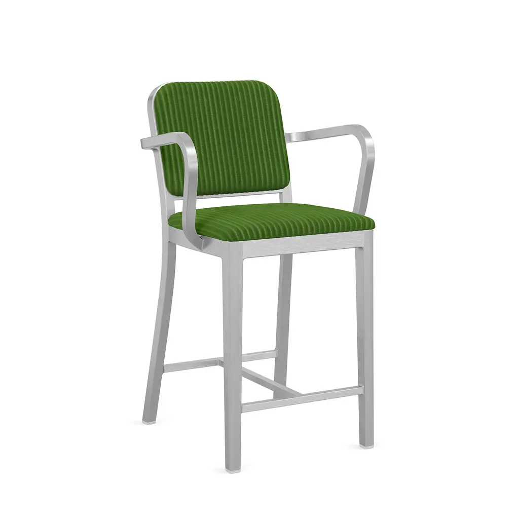Navy Officer by Jasper Morrison, 2019/2024 Jasper Morrison has given Emeco’s classic upholstered Navy Officer Collection a fresh, light and modern update with a range of upholstery options. The 80% recycled aluminum frame is available in Emeco's signature hand brushed finish or a black powder coat. Emeco's inhouse powder coat colors are available for all Navy Officer chair and stool frames. We also offer COM/COL upholstery. Please contact us for details. The collection also features a side chair, a armchair, a swivel chair, a swivel armchair and a stool with arms in two heights. Standard glides: plastic TPU glides for all-around use, including outdoor use. Alternative glides available at an upcharge.