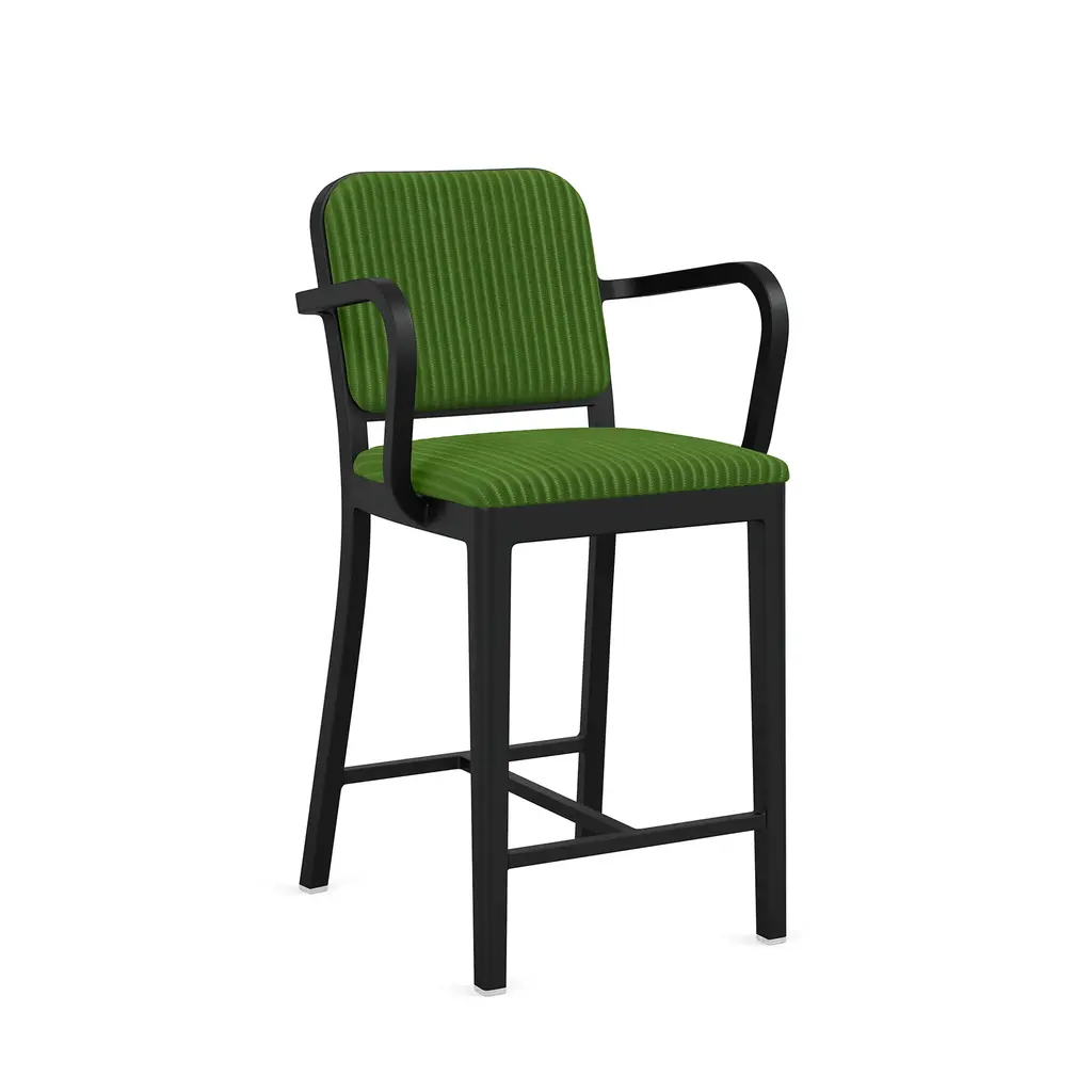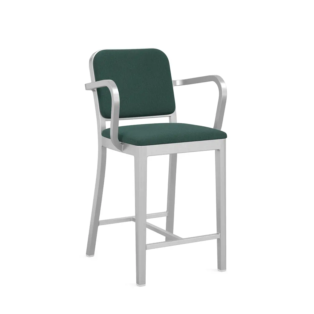 Navy Officer by Jasper Morrison, 2019/2024 Jasper Morrison has given Emeco’s classic upholstered Navy Officer Collection a fresh, light and modern update with a range of upholstery options. The 80% recycled aluminum frame is available in Emeco's signature hand brushed finish or a black powder coat. Emeco's inhouse powder coat colors are available for all Navy Officer chair and stool frames. We also offer COM/COL upholstery. Please contact us for details. The collection also features a side chair, a armchair, a swivel chair, a swivel armchair and a stool with arms in two heights. Standard glides: plastic TPU glides for all-around use, including outdoor use. Alternative glides available at an upcharge.